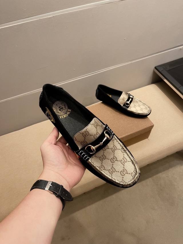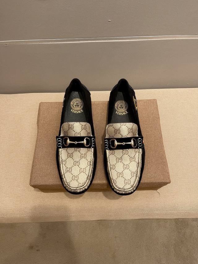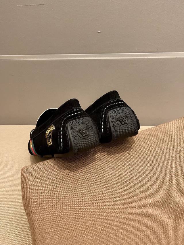 调工厂p价 男装男鞋 运动原单 古奇范思哲合作版 官方新款,意大利名模贵族们的棒棒款,时尚界的佼佼者,无可超越,市场高品质精品豆豆男鞋。明星周杰伦同款,原单正品