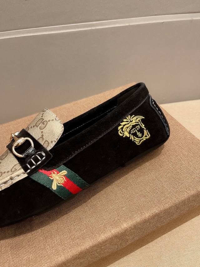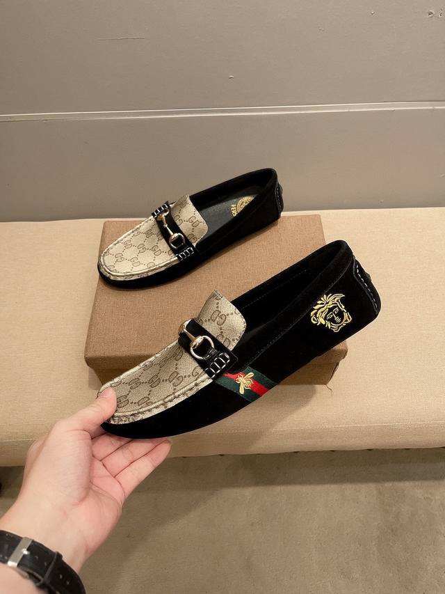 / 调工厂p价 男装男鞋 运动原单 古奇范思哲合作版 官方新款,意大利名模贵族们的棒棒款,时尚界的佼佼者,无可超越,市场高品质精品豆豆男鞋。明星周杰伦同款,原单正品