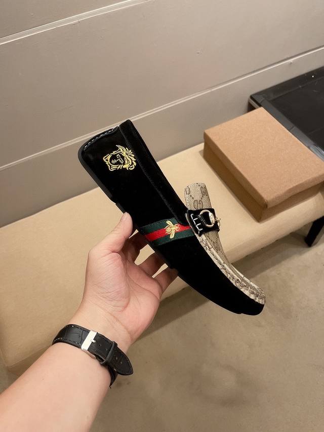 调工厂p价 男装男鞋 运动原单 古奇范思哲合作版 官方新款,意大利名模贵族们的棒棒款,时尚界的佼佼者,无可超越,市场高品质精品豆豆男鞋。明星周杰伦同款,原单正品,采用进口原版牛皮+原版黑色牛皮内里。法国殿堂级尊贵款售价9100瑞士法郎,法国巴黎时装周走秀款 ,一个品牌可以深植内心 ,一双鞋也可以让你流连忘返,穿出的不仅仅是尊贵,更是一种气场标准37-45