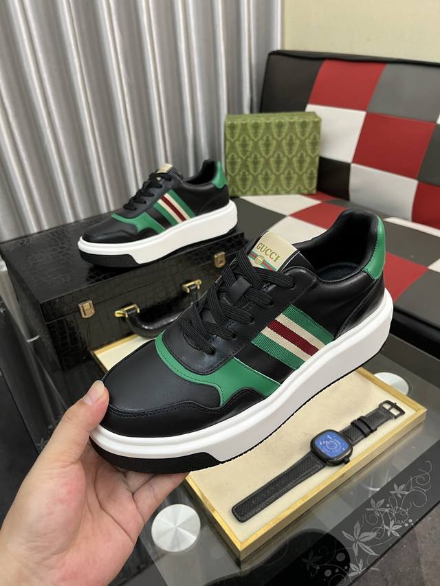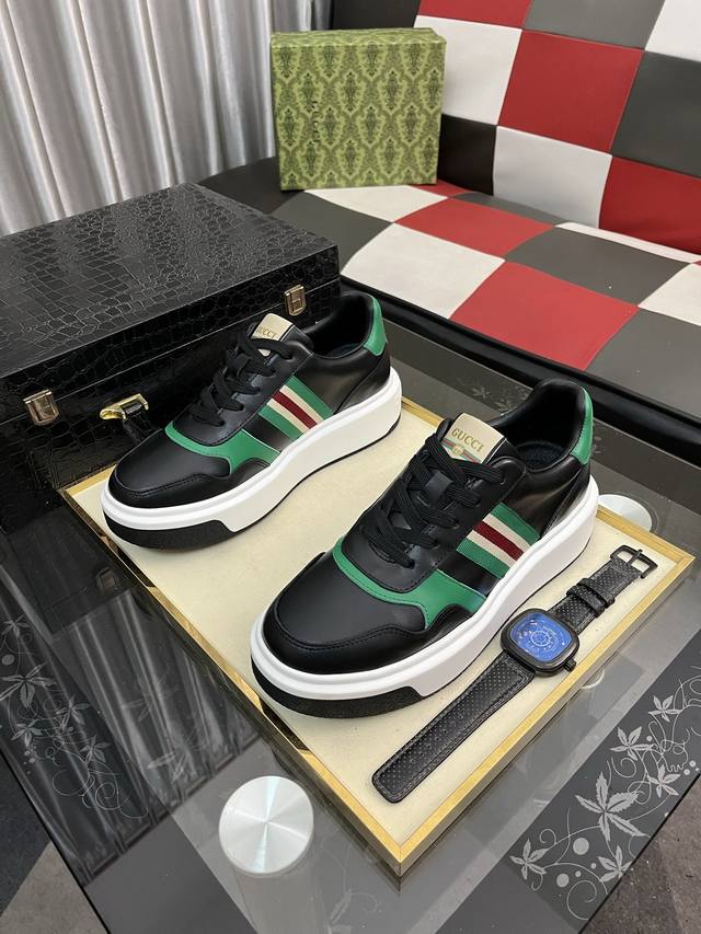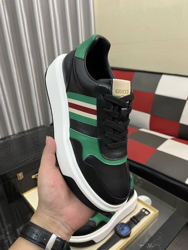 调工厂p价 男装男鞋 运动原单 古奇 Gucci 原单品质.~ 独特现代风运动鞋。休闲鞋潮男必备款 意大利进口原版品牌,进口原版皮,羊里 拒绝脱色磨脚 鞋底:原厂特供原版底,法国懒人风格设计 贴脚 在贴原单品质 超舒服原版底 。就好像实物拍摄实物更赞 码数:38-443色可选