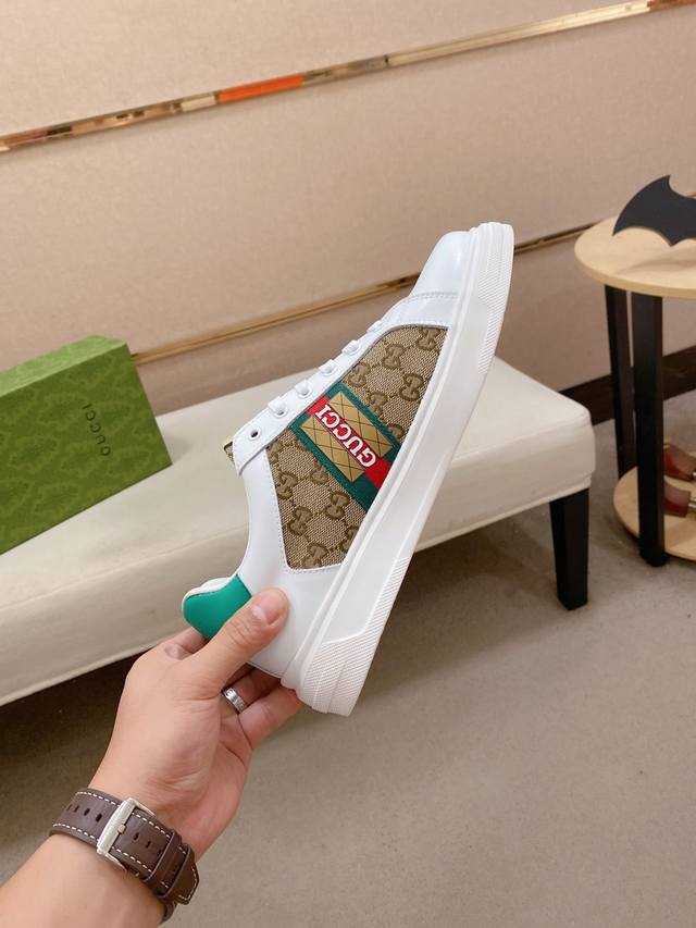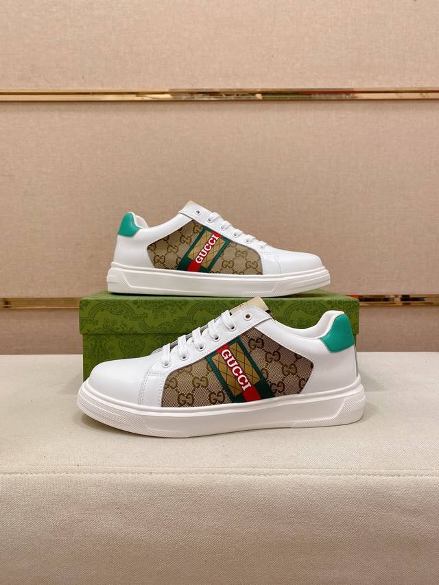 调工厂p价 男装男鞋 运动原单 高品质新款 Gucci 古奇 专柜同步上市, 新款男鞋、面料精选进口牛皮,内里:羊皮内里。高端气垫开模防滑橡胶大底,精美线条、简约大气,上脚舒服上挡次、休闲旅游。码数:38一44 可定做45不退换