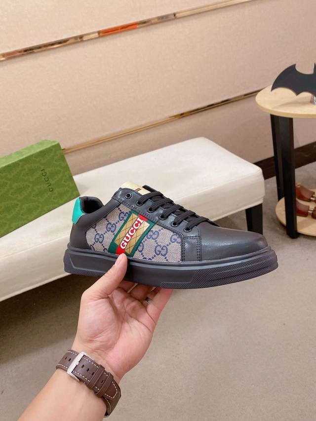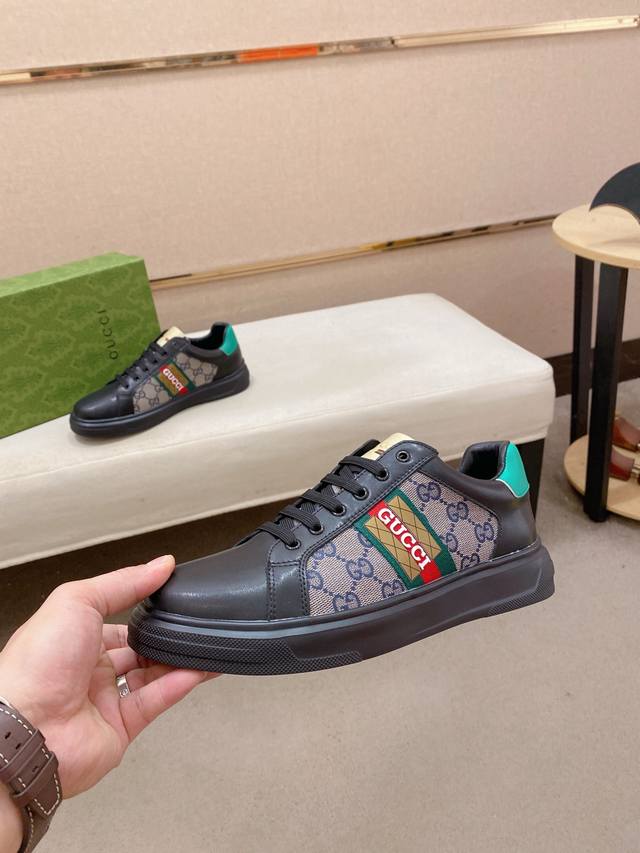 调工厂p价 男装男鞋 运动原单 高品质新款 Gucci 古奇 专柜同步上市, 新款男鞋、面料精选进口牛皮,内里:羊皮内里。高端气垫开模防滑橡胶大底,精美线条、简约大气,上脚舒服上挡次、休闲旅游。码数:38一44 可定做45不退换