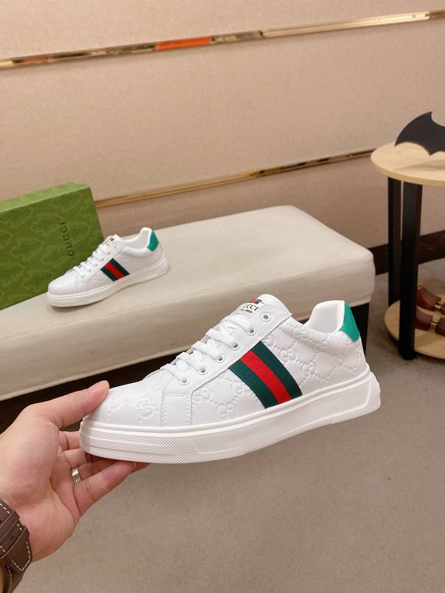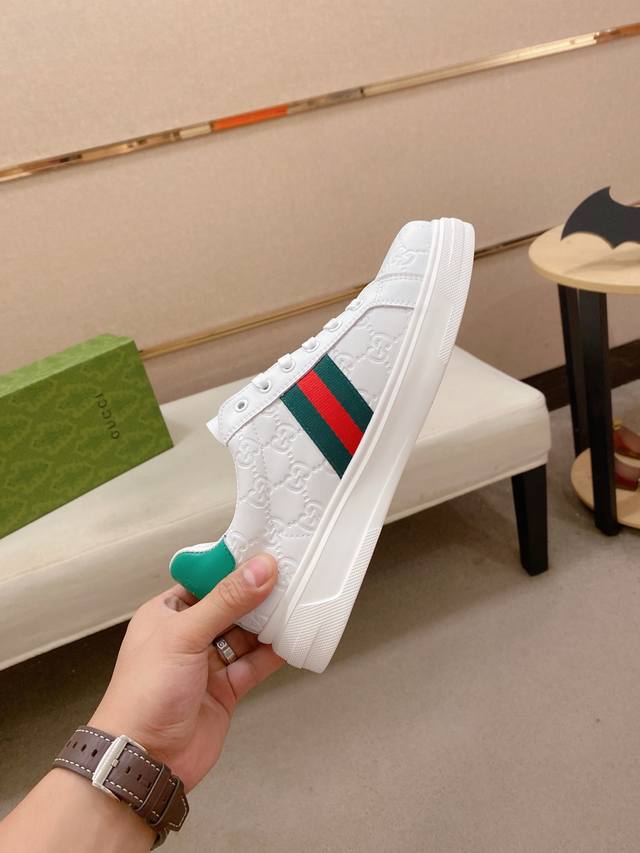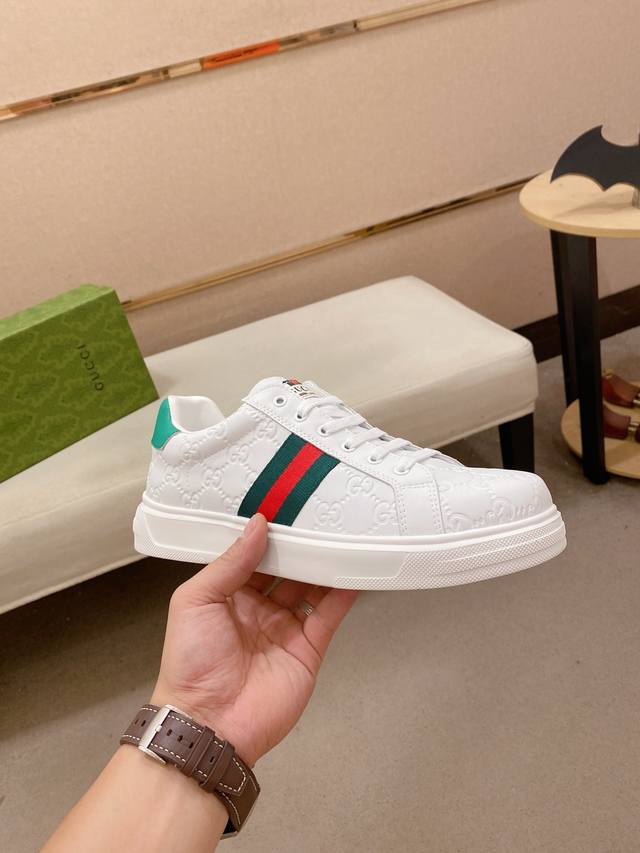 调工厂p价 男装男鞋 运动原单 高品质新款 Gucci 古奇 专柜同步上市, 新款男鞋、面料精选进口牛皮,内里:羊皮内里。高端气垫开模防滑橡胶大底,精美线条、简约大气,上脚舒服上挡次、休闲旅游。码数:38一44 可定做45不退换