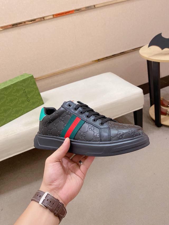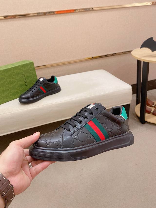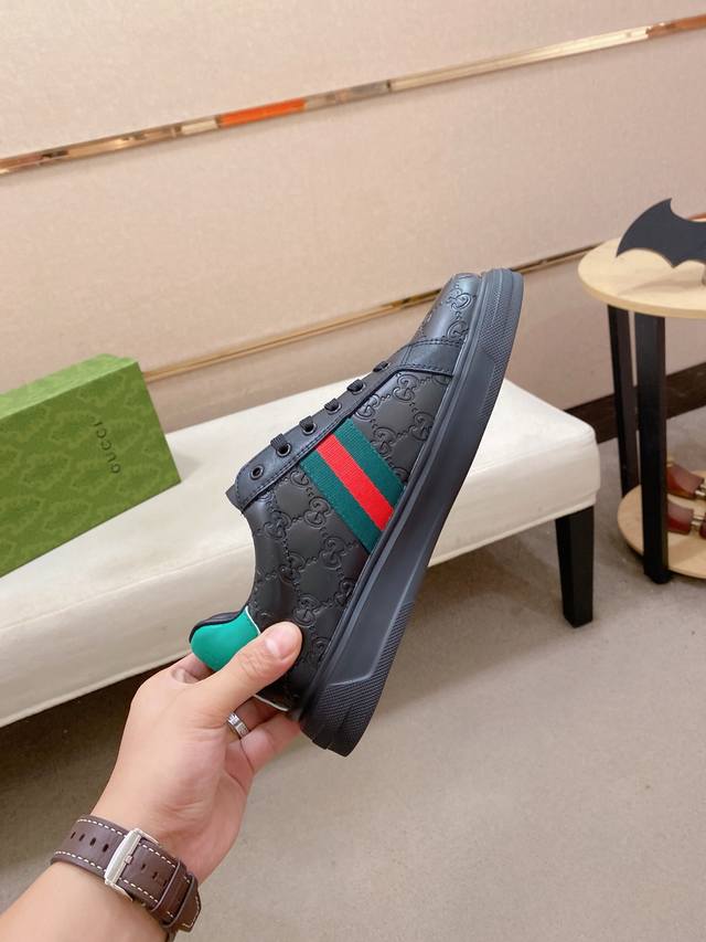 调工厂p价 男装男鞋 运动原单 高品质新款 Gucci 古奇 专柜同步上市, 新款男鞋、面料精选进口牛皮,内里:羊皮内里。高端气垫开模防滑橡胶大底,精美线条、简约大气,上脚舒服上挡次、休闲旅游。码数:38一44 可定做45不退换