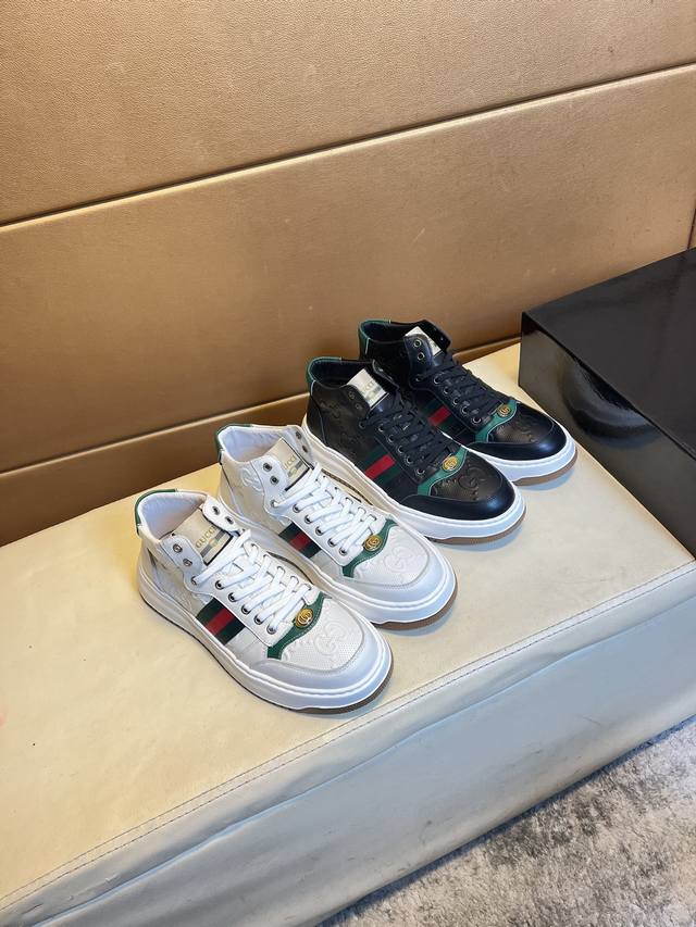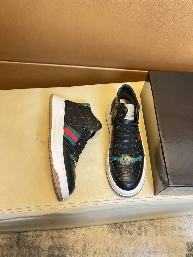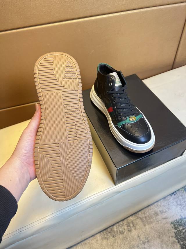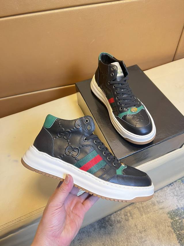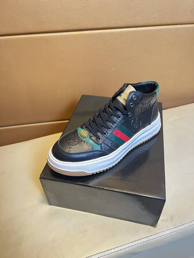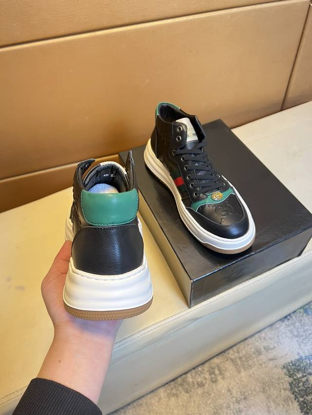 出厂价: 古奇 男士经典高帮休闲鞋,鞋面采用意大利进口牛皮专用防水布料透气内里,做工精细,高端大气 有时尚典范造型...
