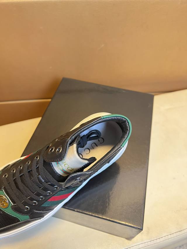高邦原单品质独家首发 古奇 独特现代风运动鞋。休闲乐福原版皮 猪里 拒绝脱色磨脚 鞋底:原厂特供原版底,超酷 系带走路都带风风格设计 超舒服耐磨防滑原版底 。就好像实物拍摄实物更赞 适合户外,驾车完美高品质板鞋,男鞋码数:38-44