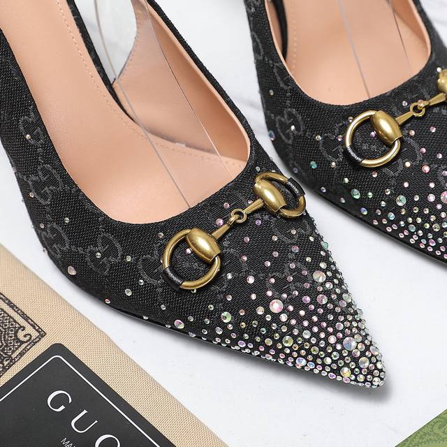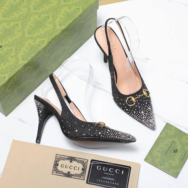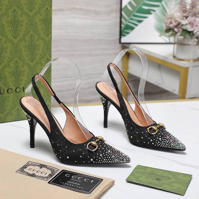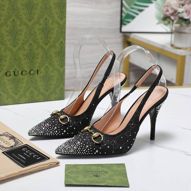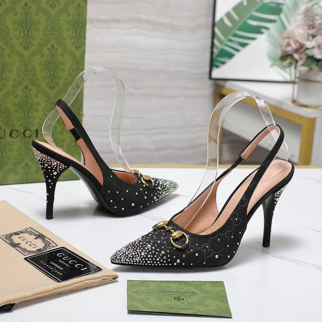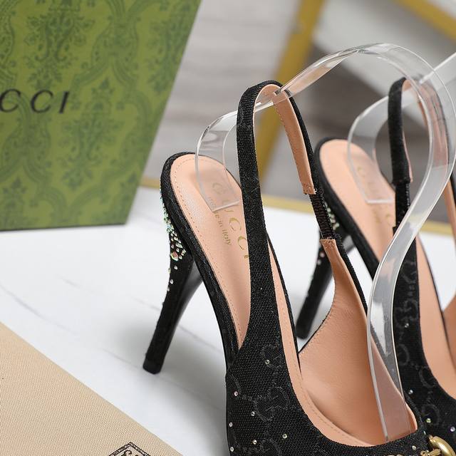 Gucci 24S春夏新品双g钻链扣后带凉鞋高跟