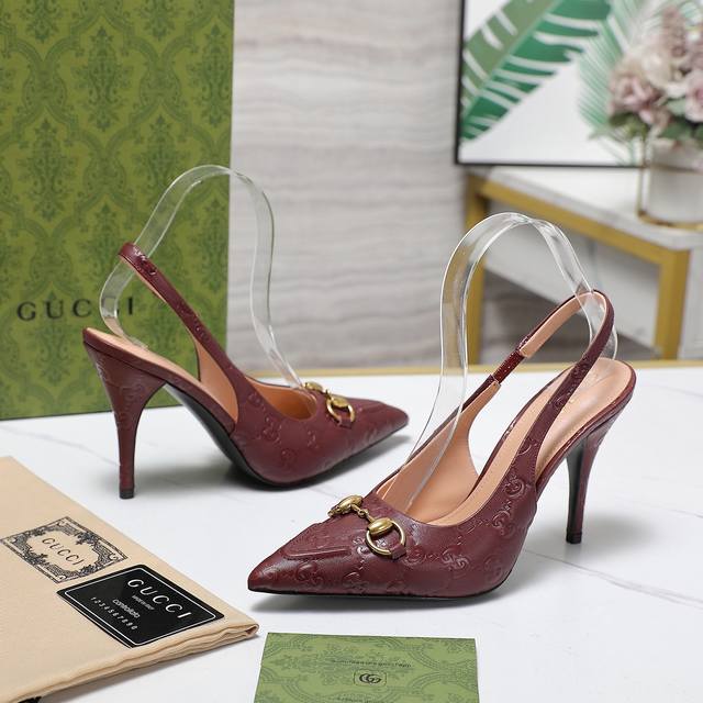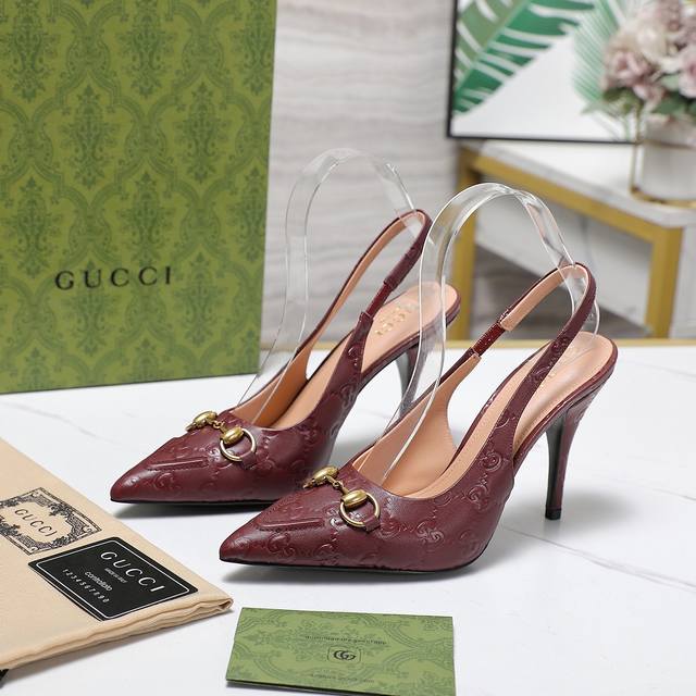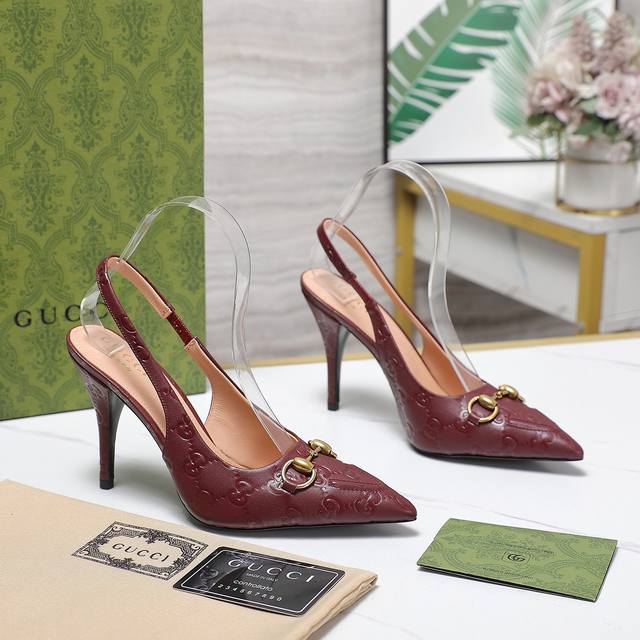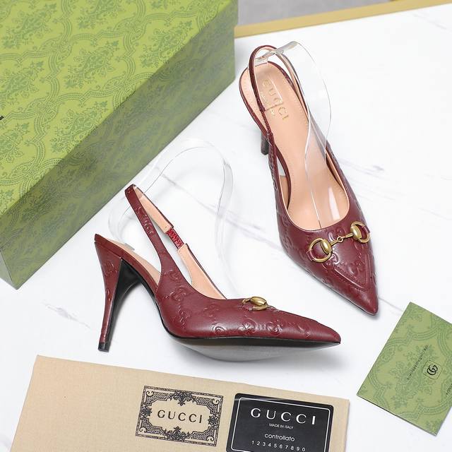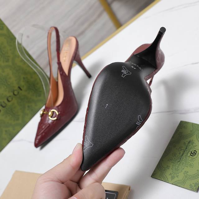 Gucci 24S春夏新品双g钻链扣后带凉鞋高跟