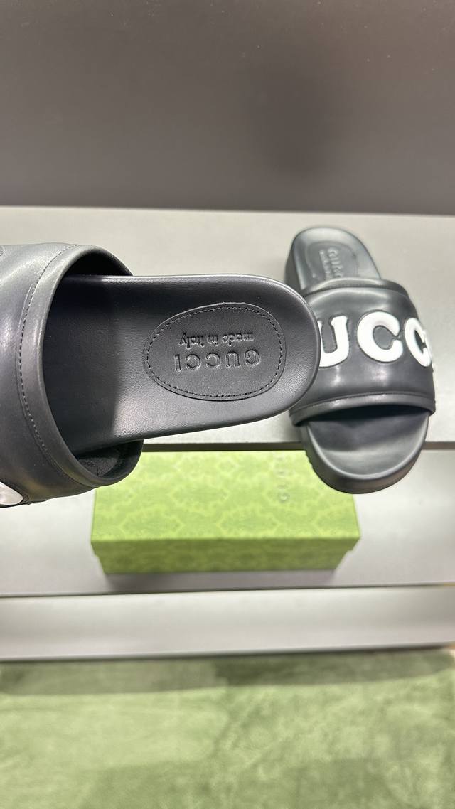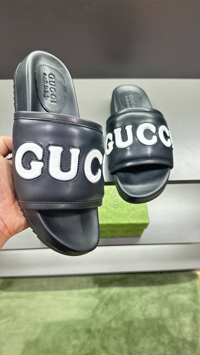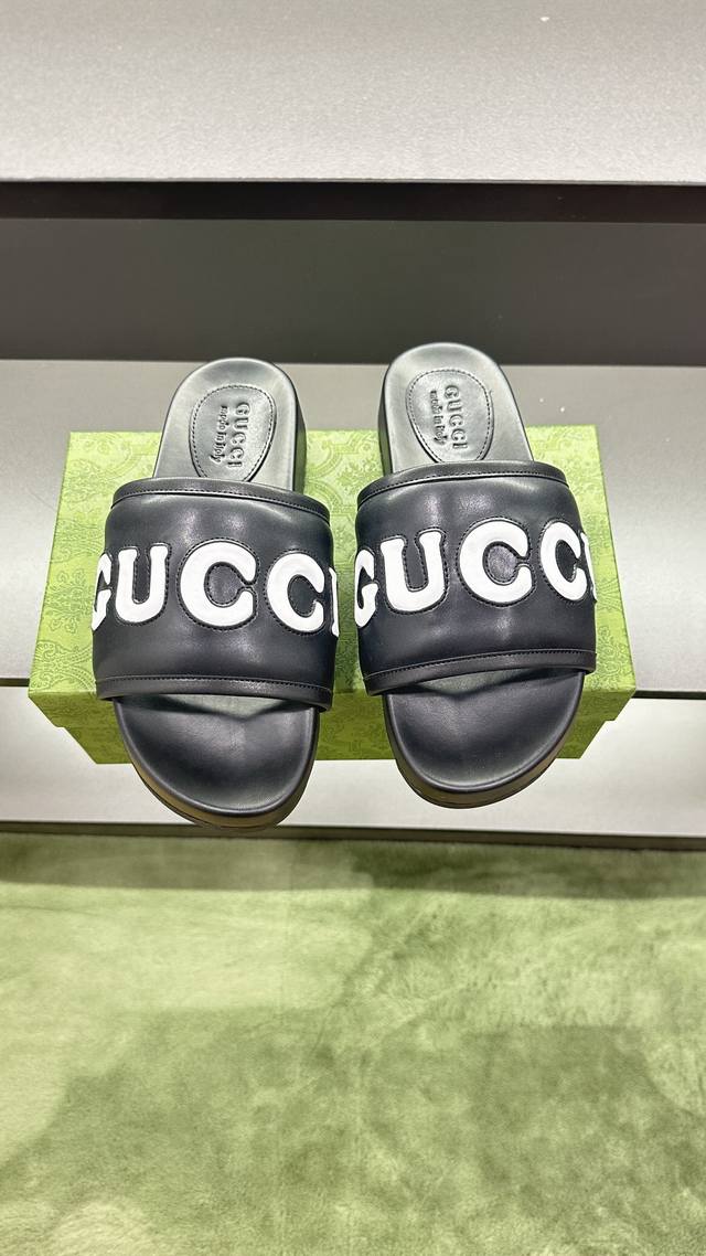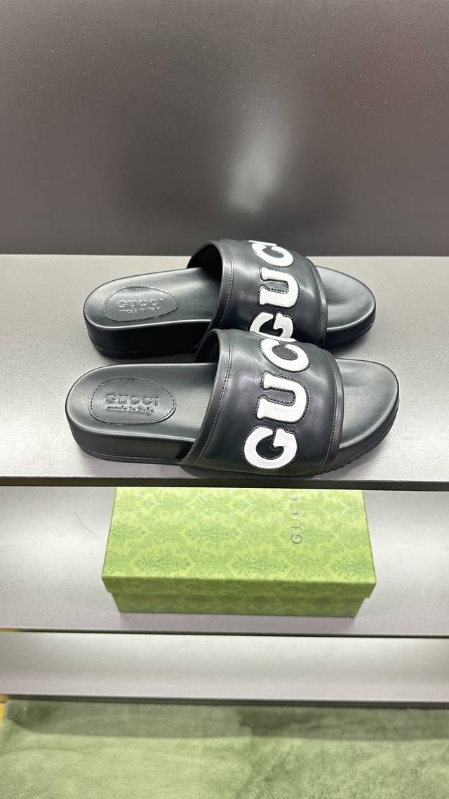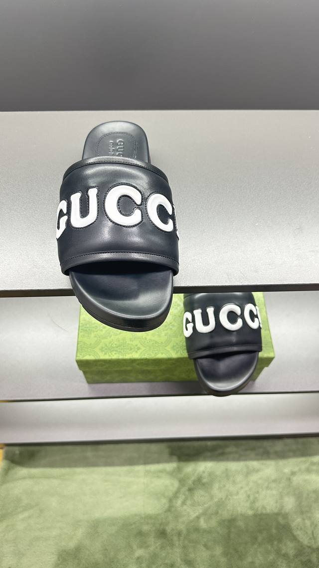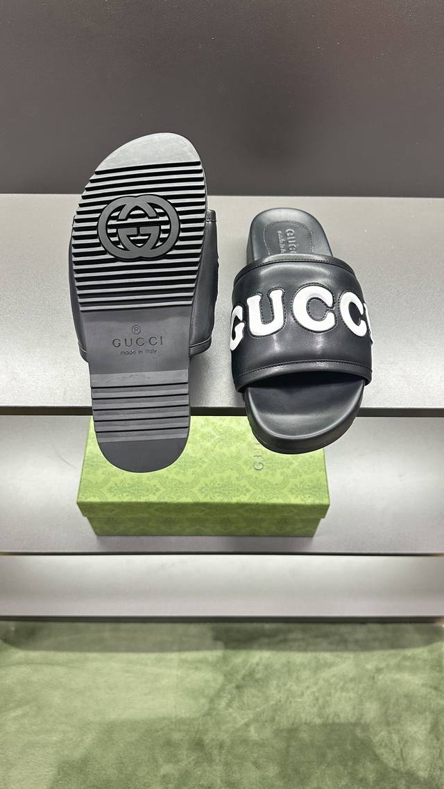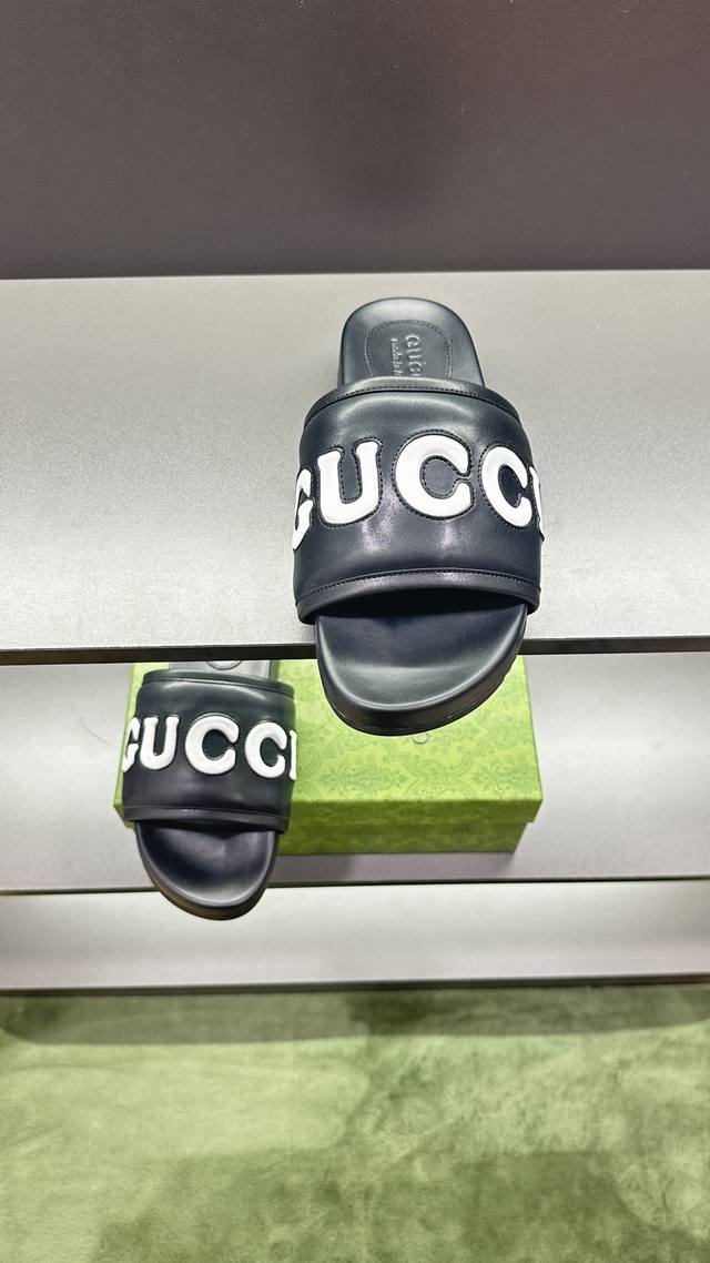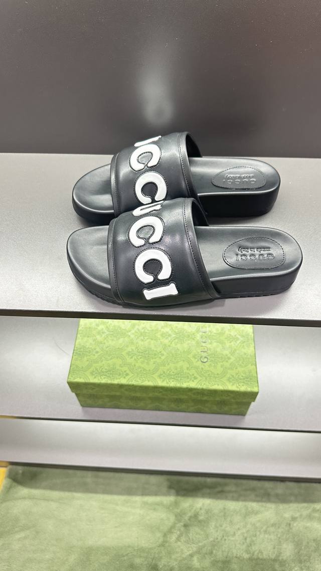 / G家 情侣款 P: 女码36~40码男码39~45, 46.订做 男女同款GG拖鞋 这款拖鞋采用 GG 聚酯纤维制成,正面饰有 Gucci 标签,为款式增添了醒
