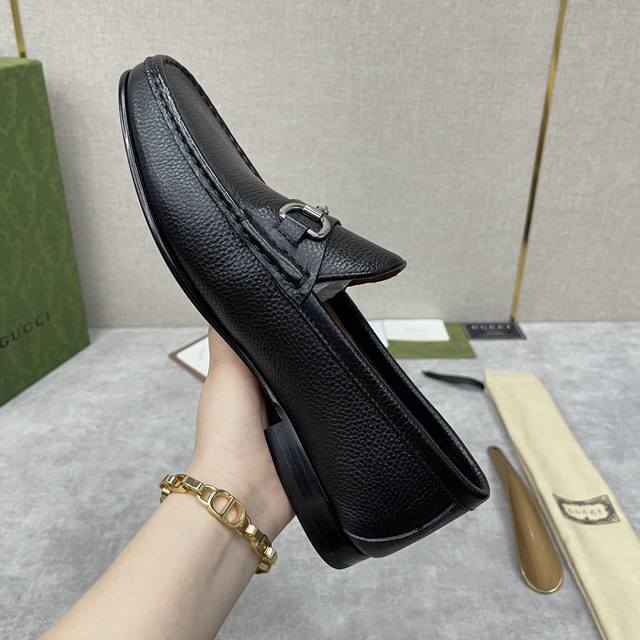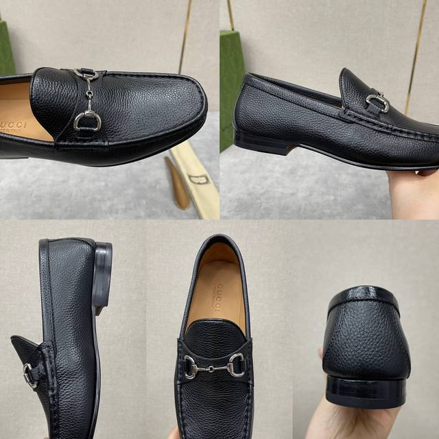 G家 Gucc* 新品男士马衔扣乐福鞋 官方售价rmb,400 采用进口牛皮 柔软粒面牛皮打造 水染牛皮内里 小牛皮垫脚 主打亲肤舒适 微翘的鞋型更贴合脚型的弧度 意大利真皮大底 使脚感完美升级 自20世纪50年代以来,这款乐福鞋一直是gucc* 各个系列的经典单品,不断在经典设计中增添微妙新意,持续重现典藏元素 在古驰aria-时尚咏叹调 系列中,这款鞋履采用黑色皮革焕新演绎,点缀典藏细节 金属银色调马衔扣象征马术世界,以低调细节赞颂品牌的马术本源 标准皮鞋码数:39~44# 38.45.46定做