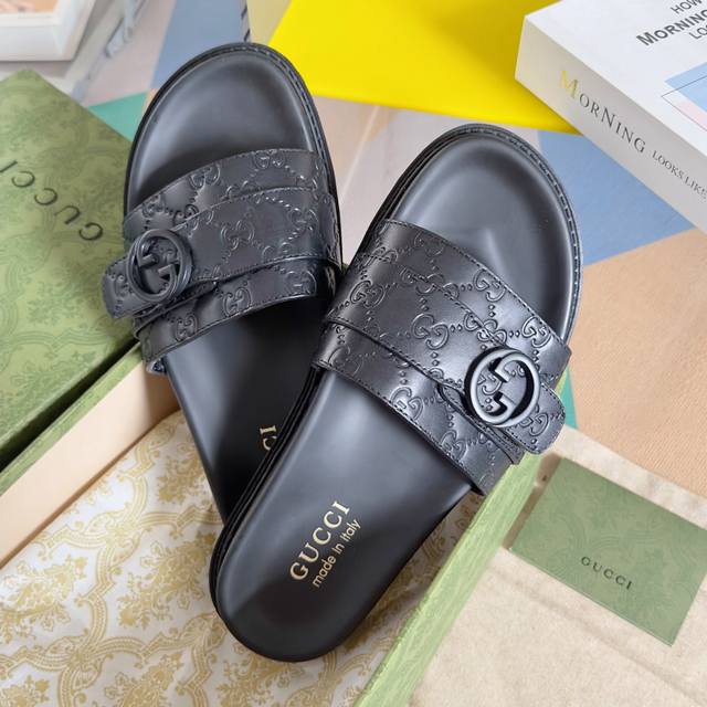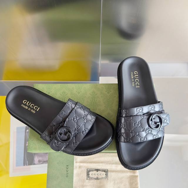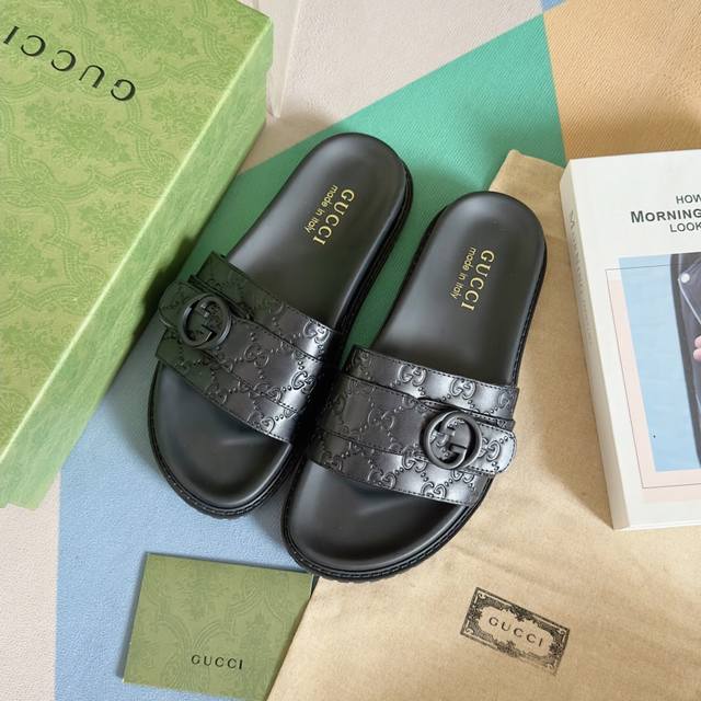 2024Gucci 古奇 夏季新款 双G 老花 夹脚 一字拖 交叉凉鞋 厚底 拖鞋 沙滩鞋