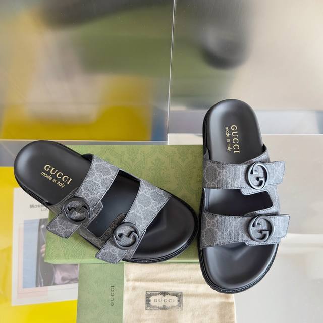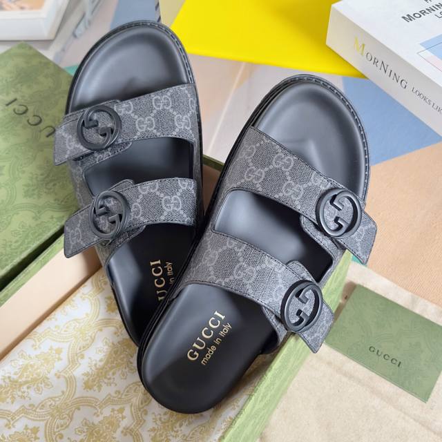 2024Gucci 古奇 夏季新款 双G 老花 夹脚 一字拖 交叉凉鞋 厚底 拖鞋 沙滩鞋