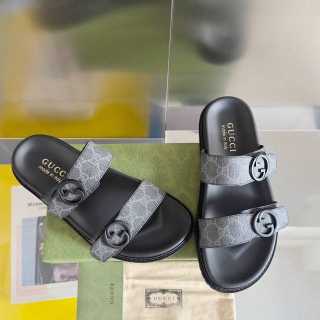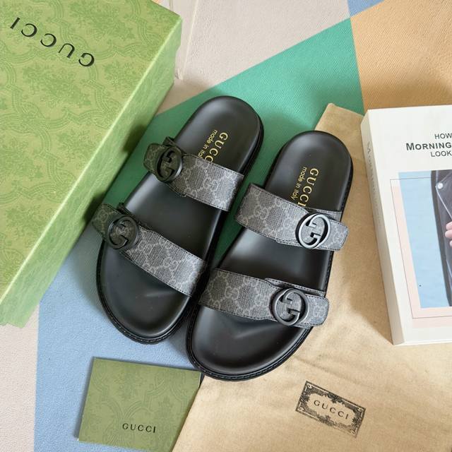 2024Gucci 古奇 夏季新款 双G 老花 夹脚 一字拖 交叉凉鞋 厚底 拖鞋 沙滩鞋