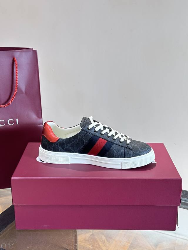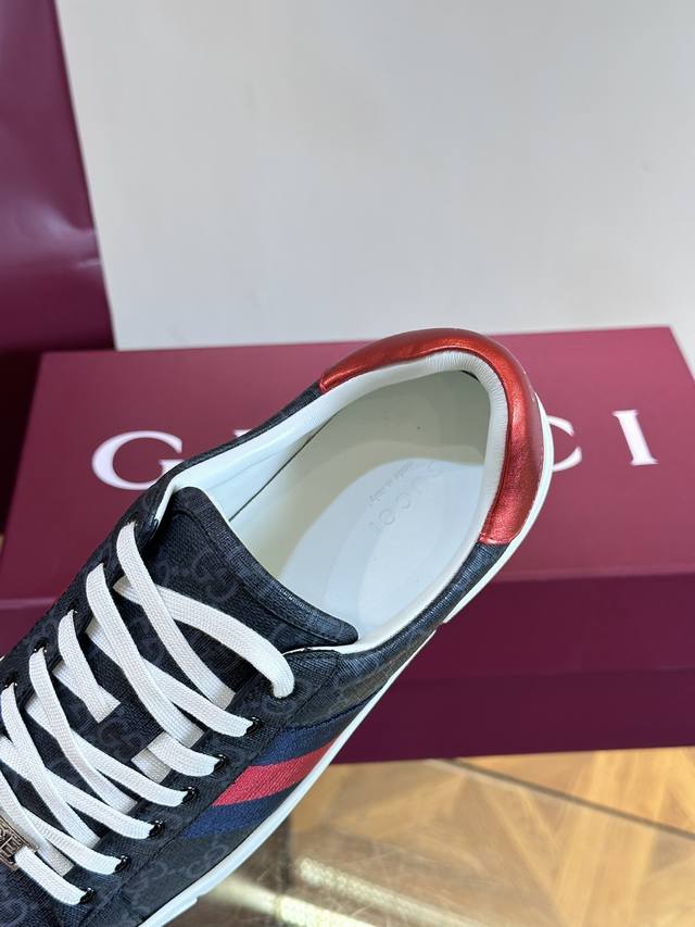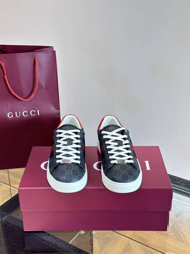 Gucc~古驰新款情侣小白鞋,这款低帮运动鞋采用篮球风格廓形设计,尽显别样匠心。匠心融蕴互扣式ACE造型配件和Gucci字样等品牌标识细节,低调致敬品牌设计传承