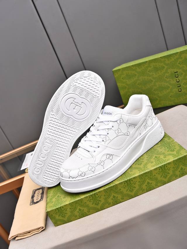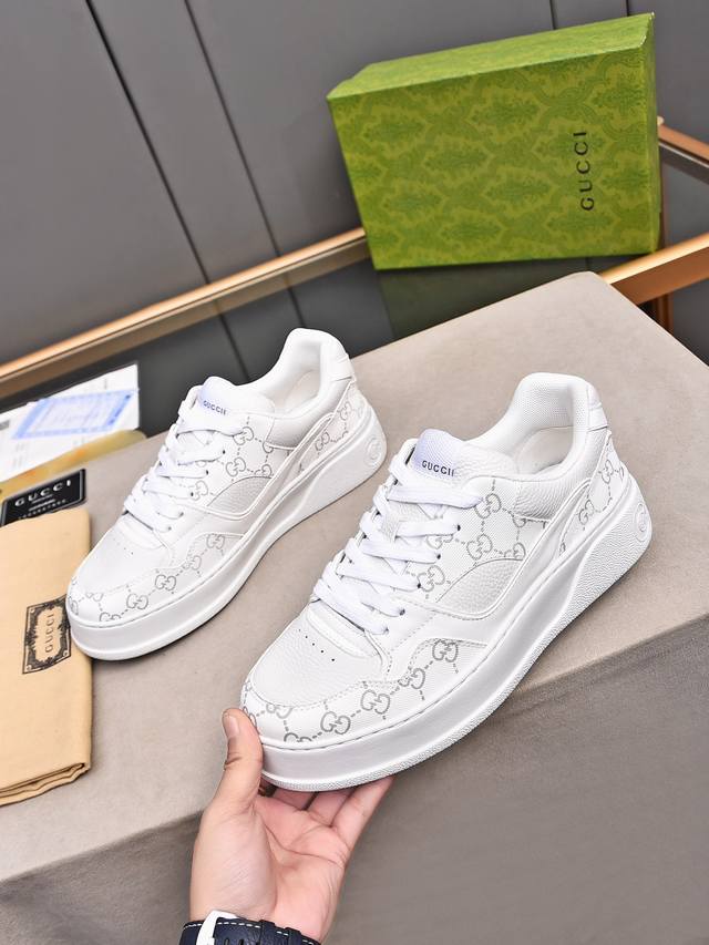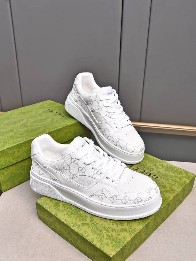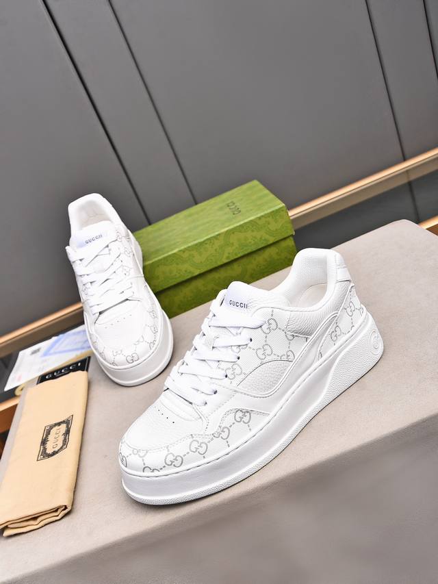 Gucc最新ip轻质厚底小白鞋上脚秒内增高4Cm!!