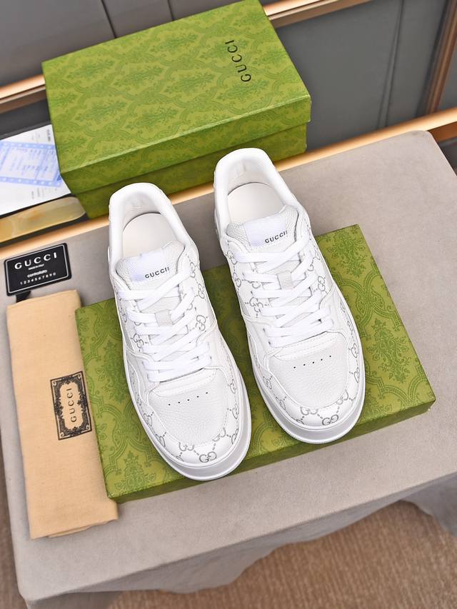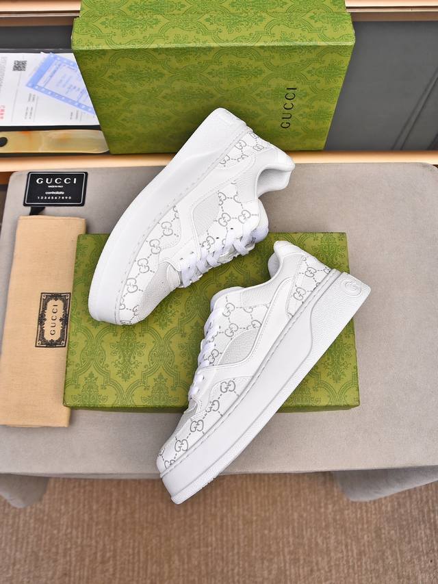 鞋面采用进口环保水染小牛皮,+牛皮内里!+牛皮挂皮成型乳胶鞋垫。原版ip轻质大底,一体射出成型超舒服有弹力, 尺码 :男款38-44 45 定制不退换 包装升级gucci