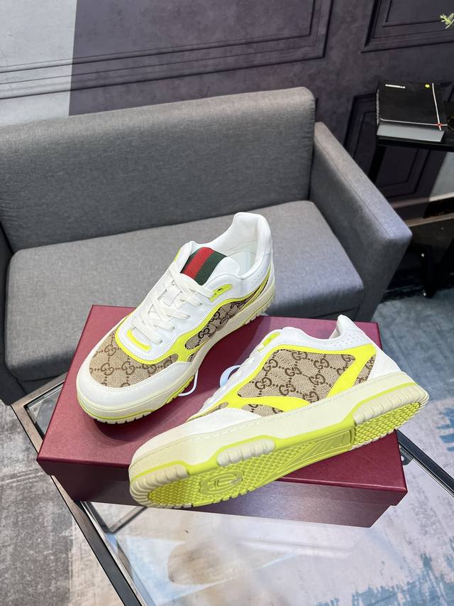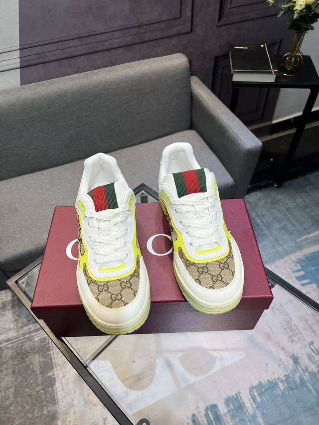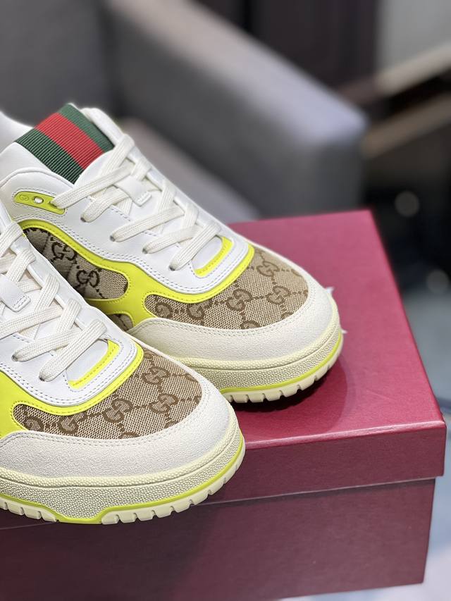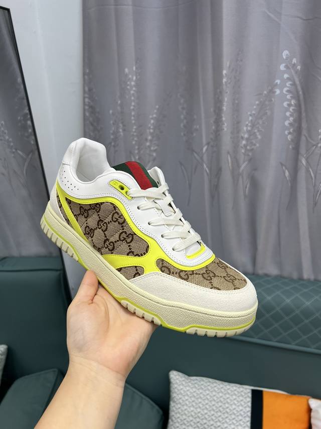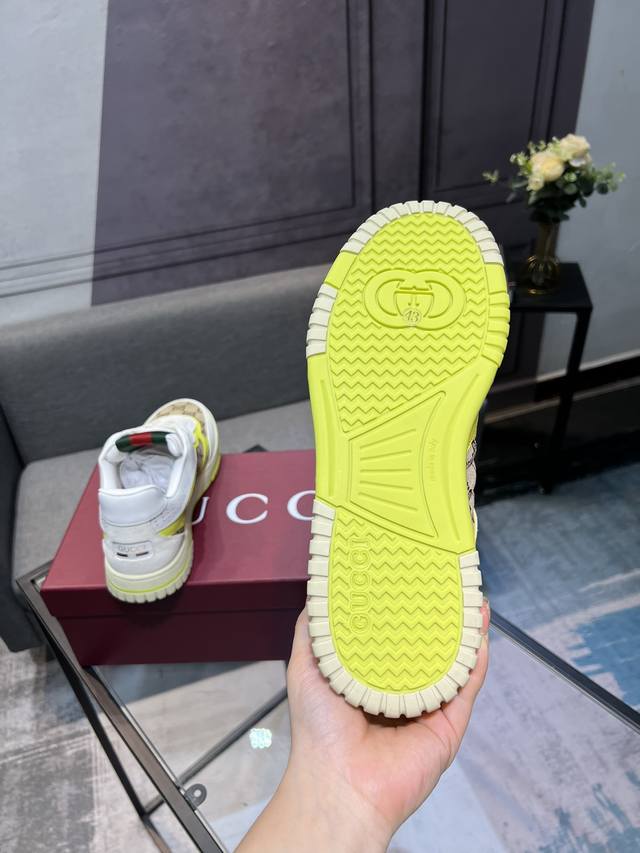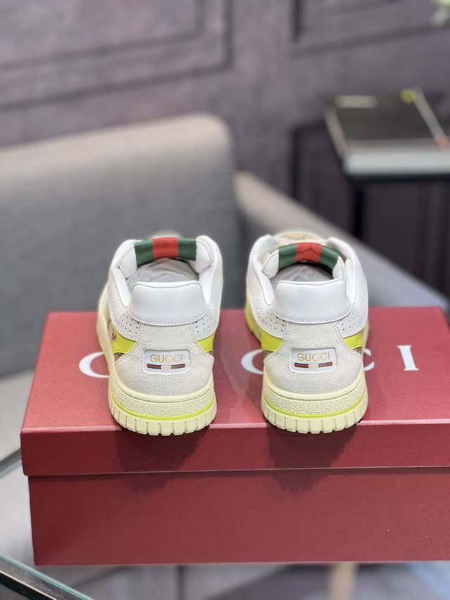 原版购入开发 做货,这款高低帮运动鞋采用篮球风格廓形设计,巧妙融入镂空拼片和做旧效果,尽显别样匠心。匠心融蕴互扣式双g造型配件和gucci字样等品牌标识细节,低调致敬品牌设计传承。