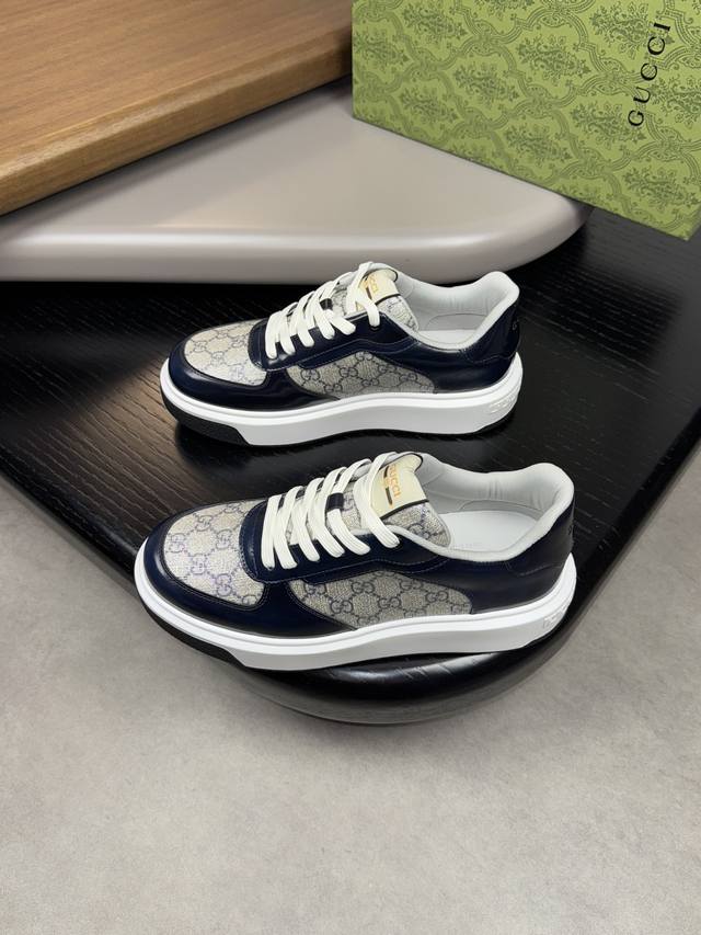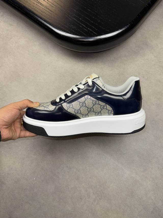 Gucci 古驰-高端品质 原单休闲运动鞋-鞋面:开边珠小牛皮、品牌图腾pvc皮料、后跟高周波品牌logo-内里:品牌帆布,垫脚;水染牛皮-大底:超轻tpu 橡