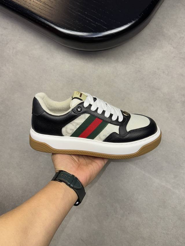-鞋面:摔纹小牛皮、品牌图腾布匹、品牌织带、品牌金属猫眼扣件