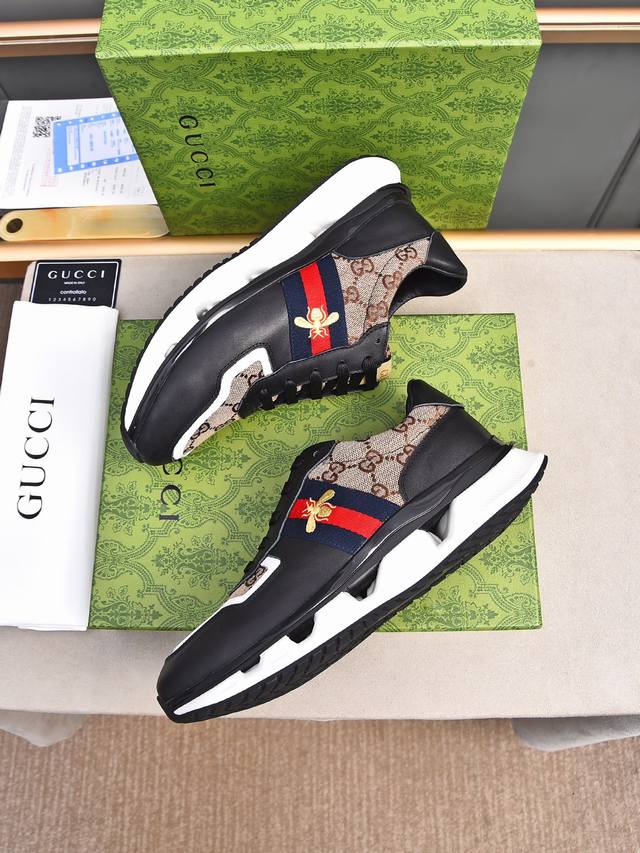 Gucci 古驰-高端品质 配全套包装-鞋面荔纹小牛皮古奇专用材料-内里 垫脚 顶级羊皮-大底 超轻tpr-橡胶 双色成型大底-超高品控 做工精细:凸显 高端
