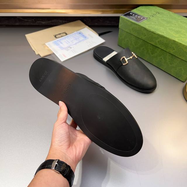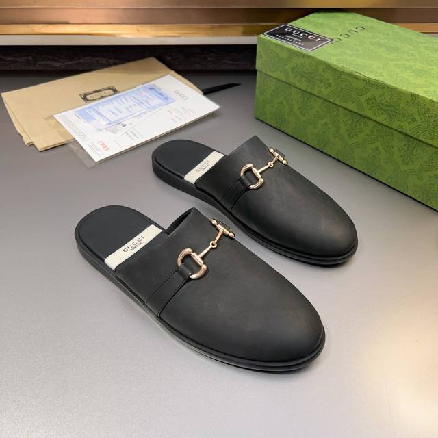 Gucci 古驰 半拖鞋!全皮 原版Logo面料,轻质发泡鞋底。男码38-44。