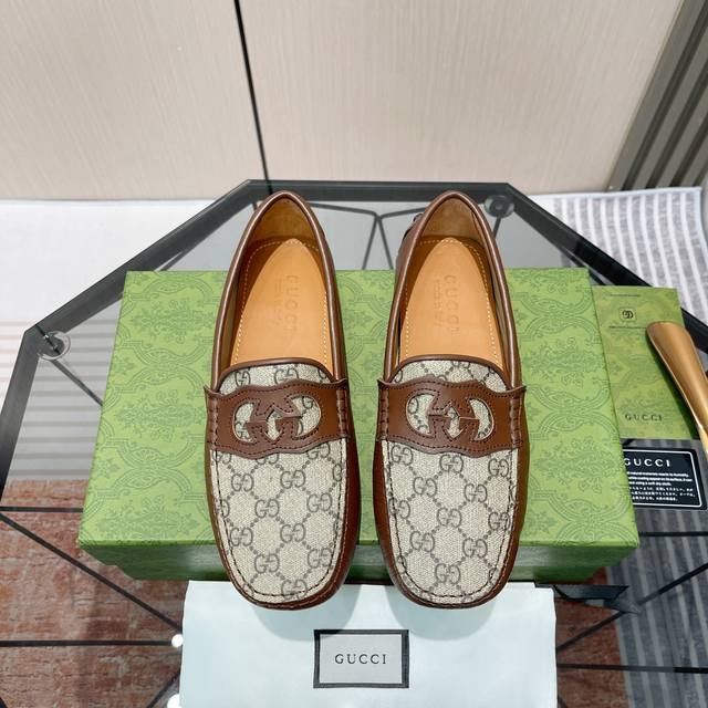 实价 Gucci 古奇男士高端胎小牛皮商务休闲套脚皮鞋,官方爆款,官方法国殿堂级热版,最新元素潮爆全球,官网火爆热卖,适合司机驾车、白领,绅士专用,原版版本,专