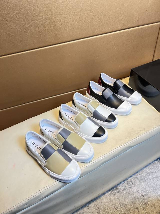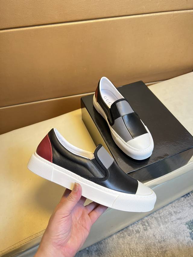 p 古奇 原单品质.~ 独特现代风运动鞋。休闲鞋潮男必备款 意大利进口原版品牌,进口原版皮,猪里 拒绝脱色磨脚 鞋底:原厂特供原版底,法国懒人风格设计 贴脚 在贴原单品质 超舒服原版底 。就好像实物拍摄实物更赞 ,高品质板鞋,男鞋码数:38-44