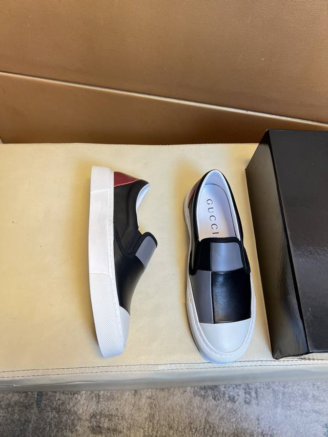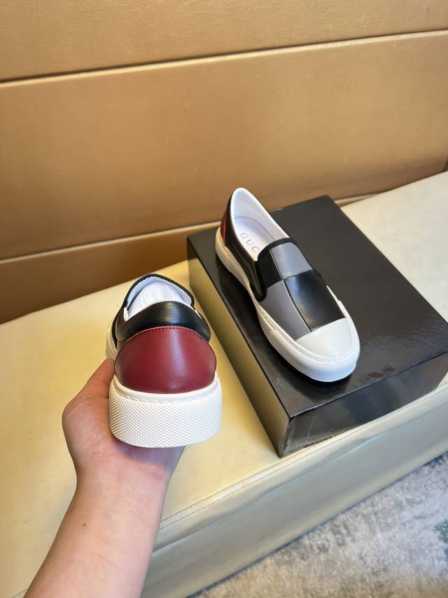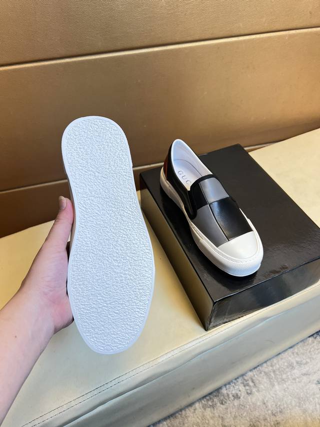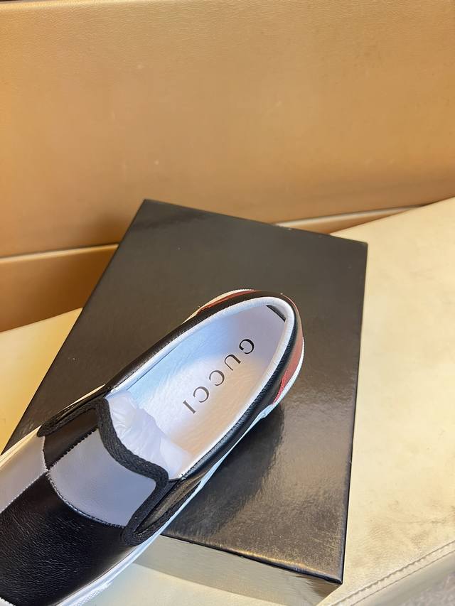 p 古奇 原单品质.~ 独特现代风运动鞋。休闲鞋潮男必备款 意大利进口原版品牌,进口原版皮,猪里 拒绝脱色磨脚 鞋底:原厂特供原版底,法国懒人风格设计 贴脚 在
