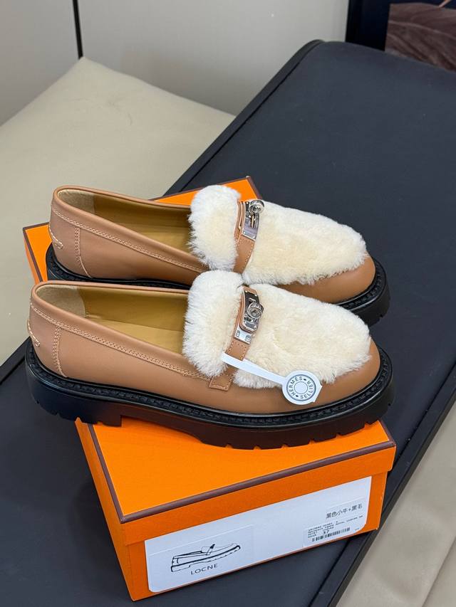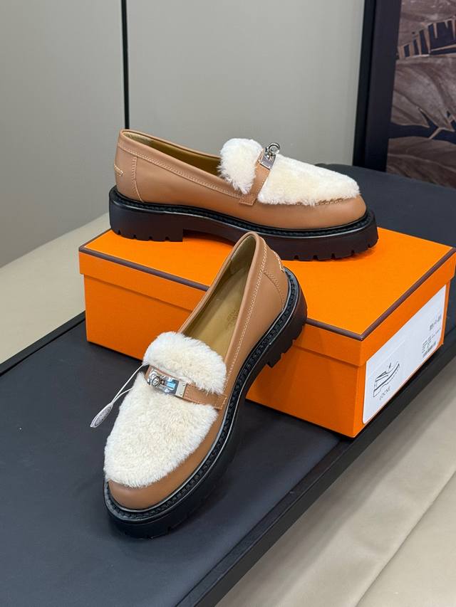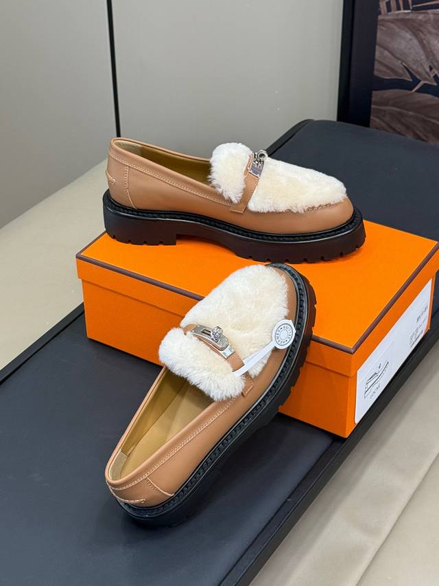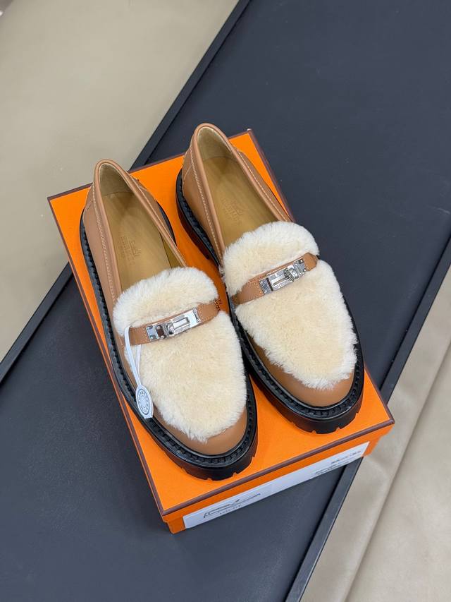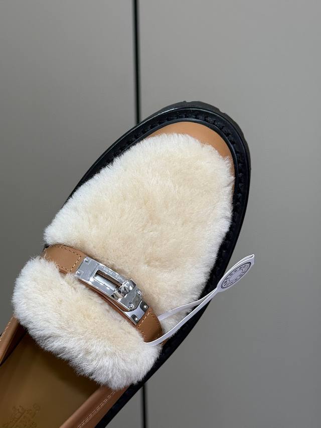 H家24秋冬lcone系列 Kelly扣羊毛乐福鞋