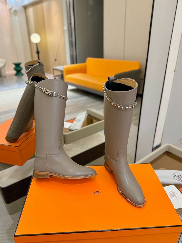 Hermes 高级 辣妹 爱马仕 Justine 小牛皮 圆头套筒 骑士筒靴顶级牛品匠心好货经典再现拒绝不了的款式谁穿都好看 优雅风格,创造不一样的感觉!它是你鞋柜里不可缺少的战靴!简约气质款式,市场最高版本◆