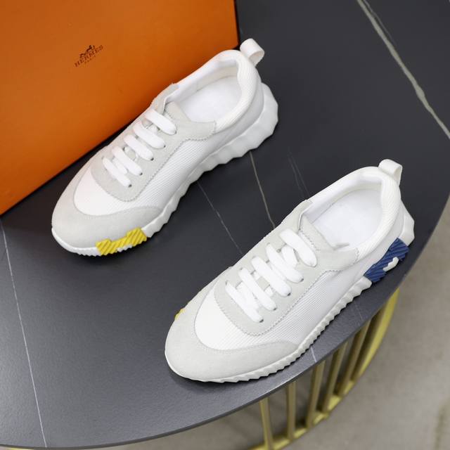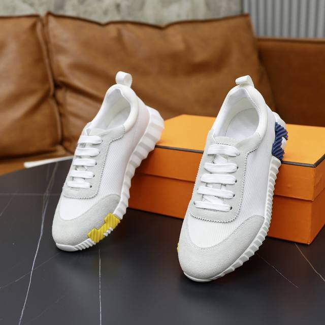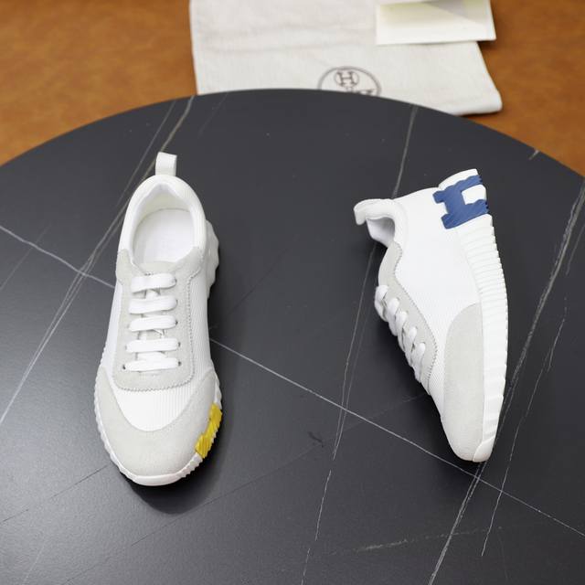 情侣款休闲之履运动老爹鞋结合高科技帆布与麂皮山羊皮,在橡胶鞋底上饰以夸张“H”字母,斜体设计和鲜艳色彩展现活力,延续品牌设计灵感。轻盈漫步都市,感受无拘舒适。