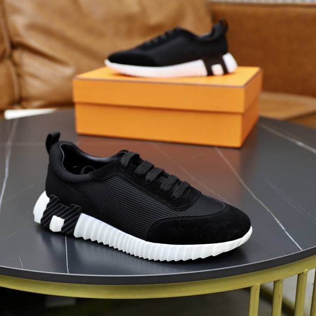 情侣款休闲之履运动老爹鞋结合高科技帆布与麂皮山羊皮,在橡胶鞋底上饰以夸张“H”字母,斜体设计和鲜艳色彩展现活力,延续品牌设计灵感。轻盈漫步都市,感受无拘舒适。