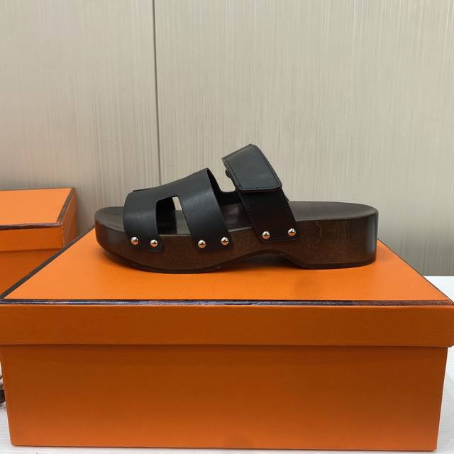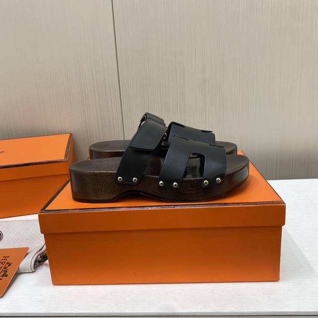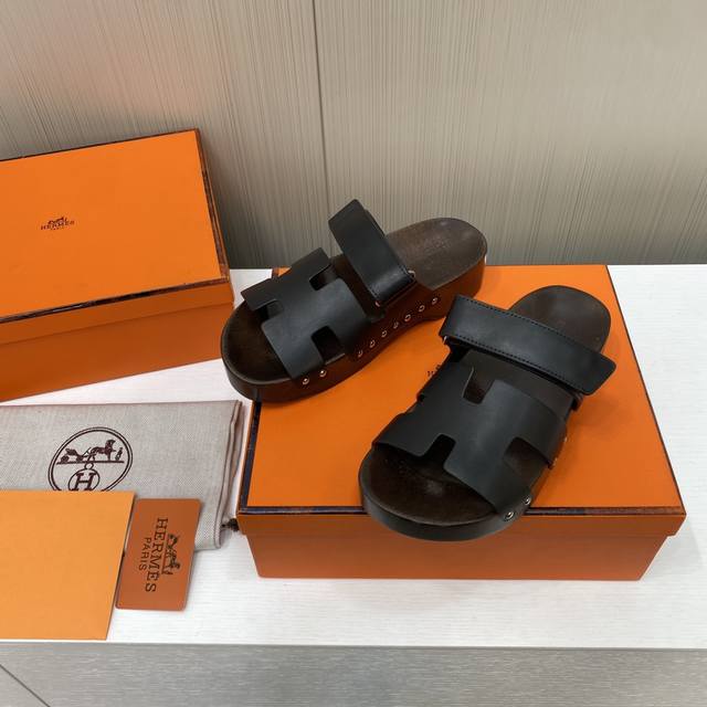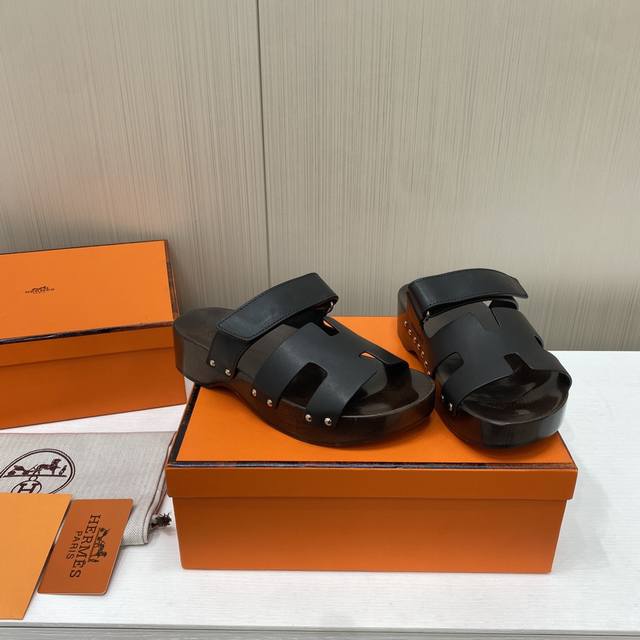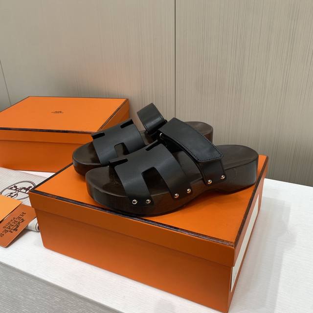 Hermes 爱马仕 经典二舅h魔术贴 厚底木屐拖鞋