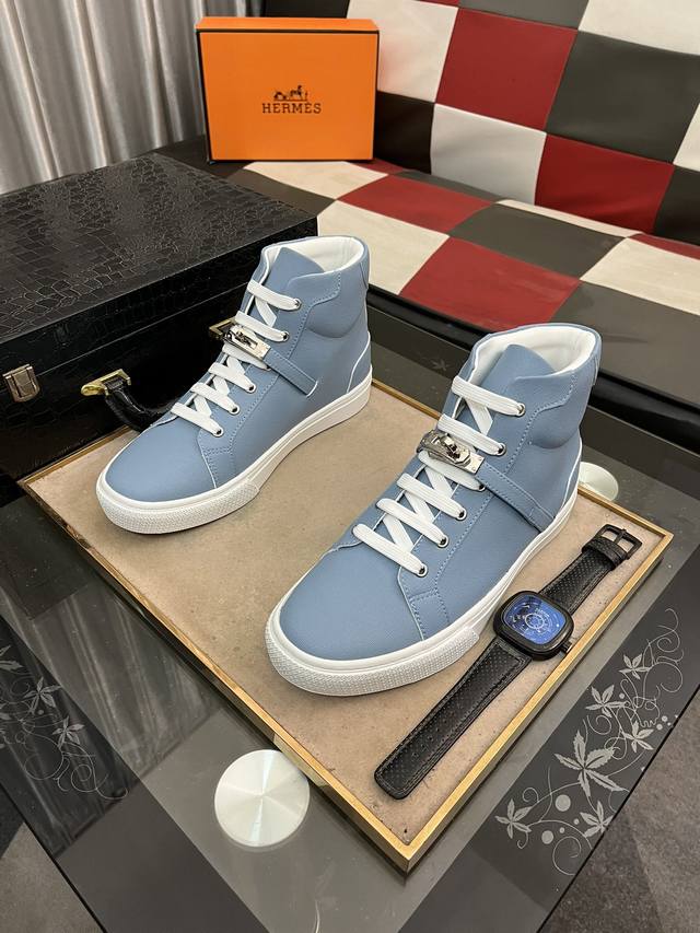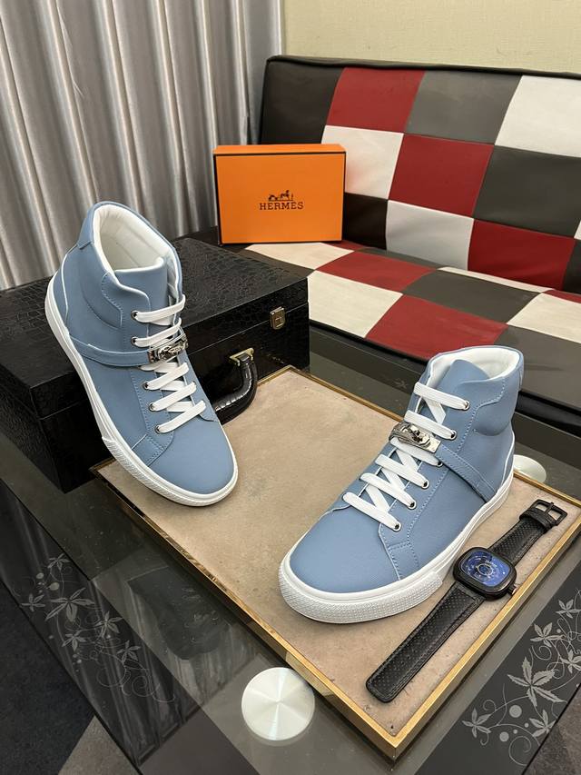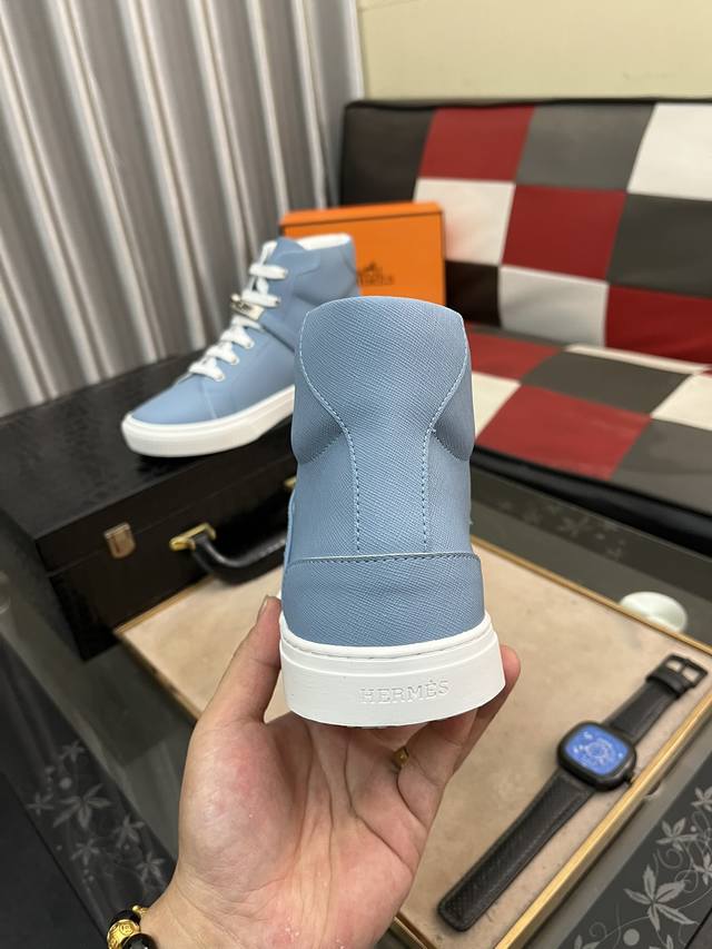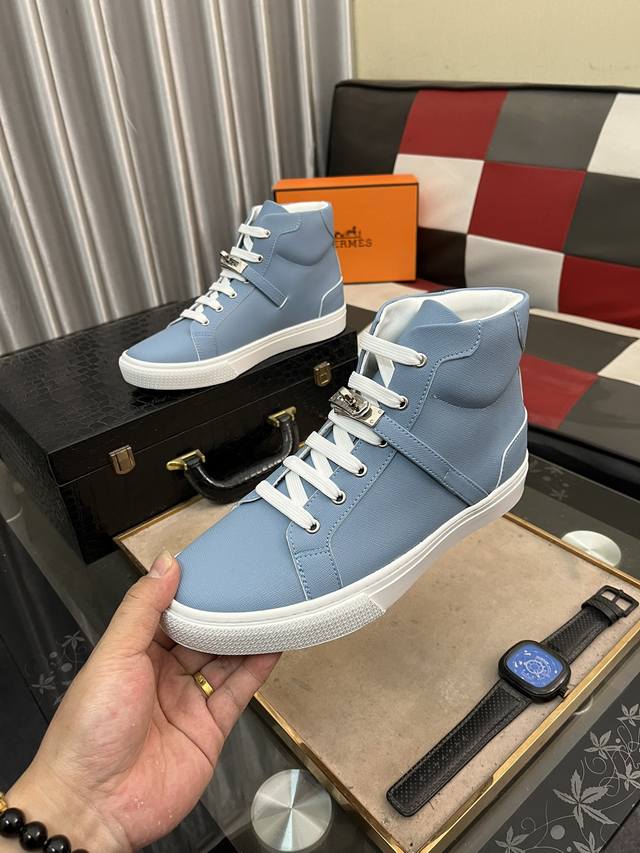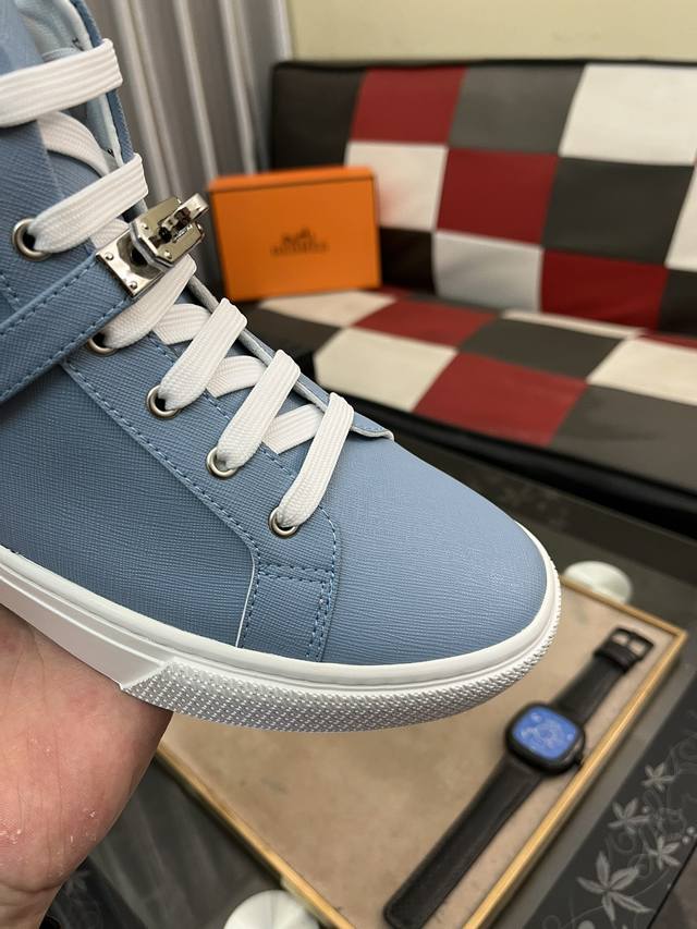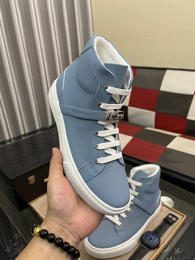 出厂价: H 爱马仕男士休闲运动鞋,牛皮打造,精品级别,打造现代都会风格!进口小牛皮内里,柔软舒适 ,Tpu大底轻便舒适,精品级别!Size:38-444色可选