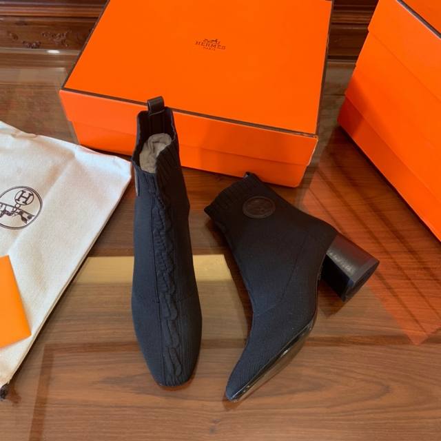 出厂价330 Hermes爱马仕Volver系列针织及踝靴短靴 顶级品质 h家第一款袜靴、饰有小牛皮“锁扣叮当”图案和“藏书章”图案,搭配马镫形鞋跟。 原版进口