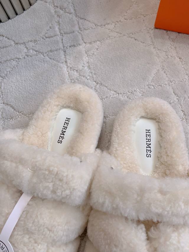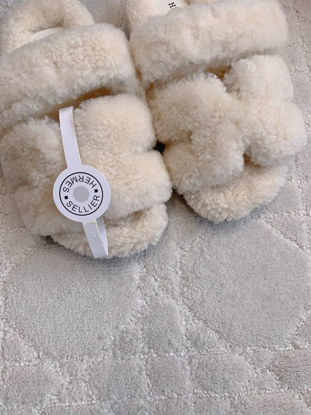 出厂价p Herme*经典款二舅毛毛拖鞋 超级厚实的澳洲进口羊毛 犹如踩在云朵般的感觉 拉长腿部线条 面料进口澳洲羊毛 原版开模大底 尺码35-39 40 41