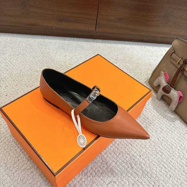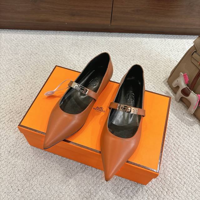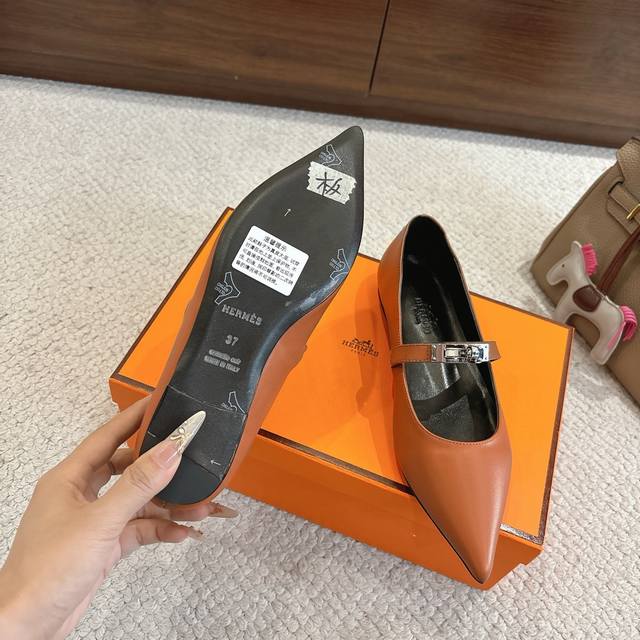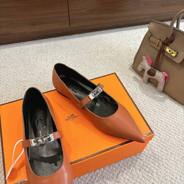 出厂价p Hermes爱马仕 Kelly 芭蕾舞鞋 原版拆卸1:1复制 套楦 独家老师傅纯手工制作工艺 原版独家开模纯钢Kelly扣件 小尖头时尚又百搭 上脚超级舒服 每个细节都做到极致 原版小牛皮 内里混种羊皮 意大利真皮大底