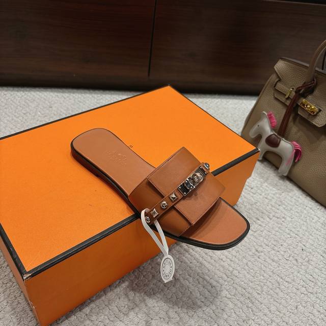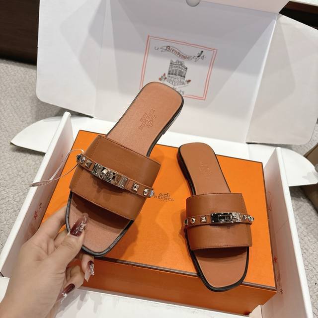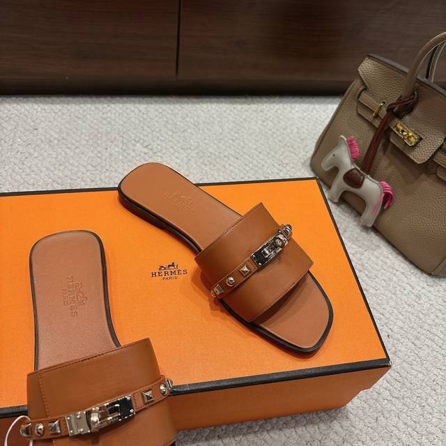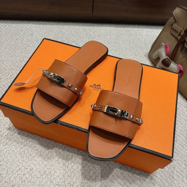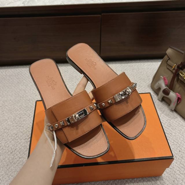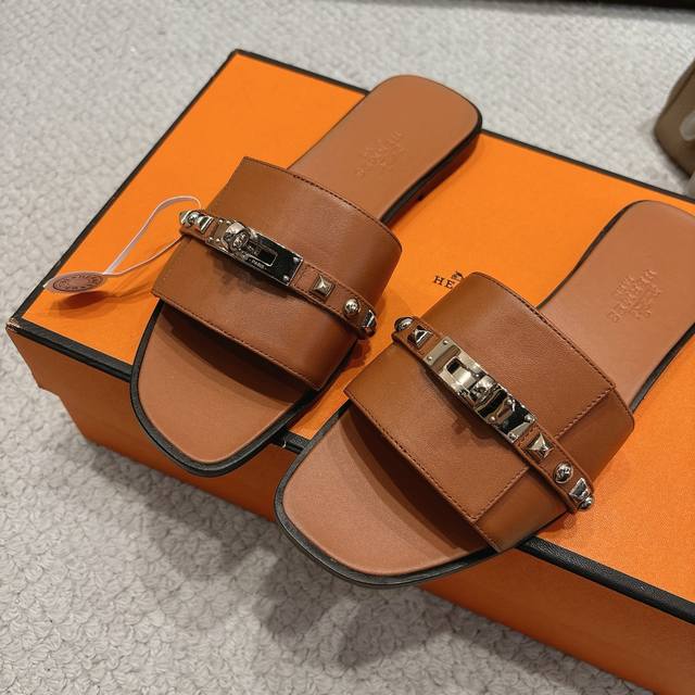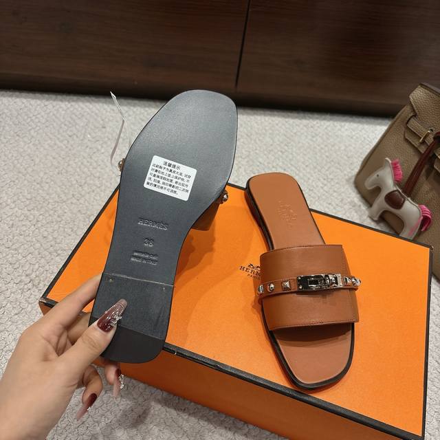 出厂价p Hermes 爱马仕Giulia凉鞋系列 时尚又百搭 超级舒服 每个细节都做到极致 独家开模纯钢Kelly扣五金 原版Swift小牛皮 原版1:1独家私模鞋面 原版真皮沿条大底
