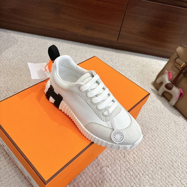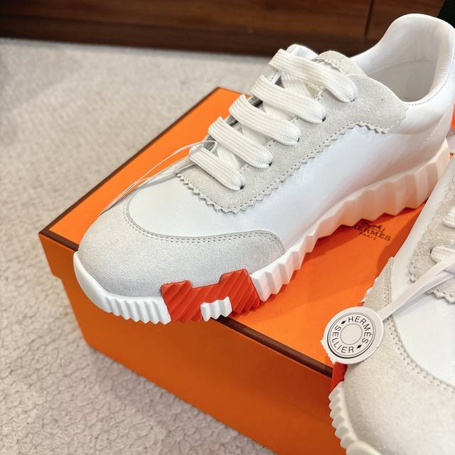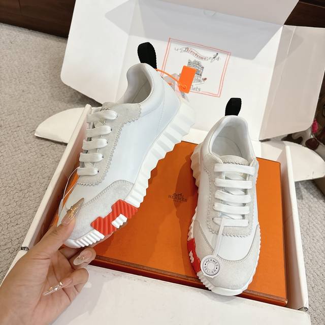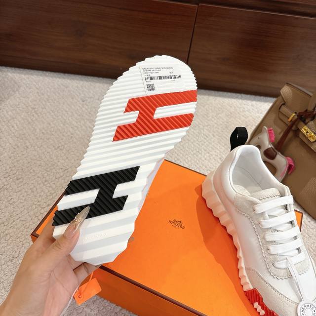 出厂价p Hermes Bouncing运动鞋New Arrival~ 秋冬新款休闲运动鞋系列 鞋面是麂皮,质感温和柔顺,一看就很贵!上脚超级轻盈 鞋底独家私模