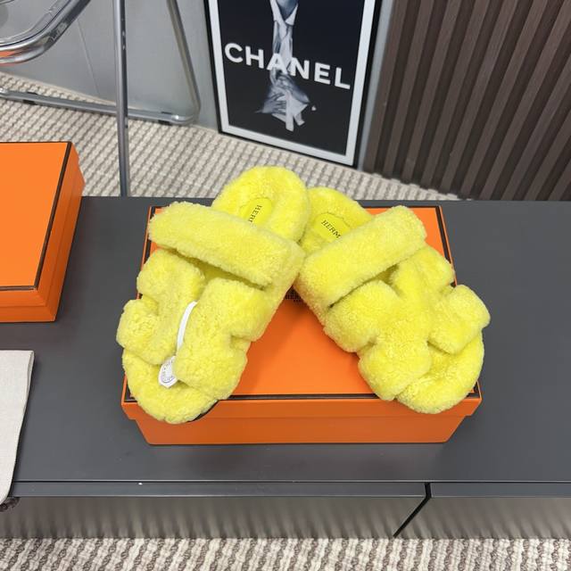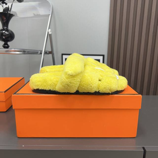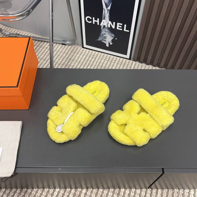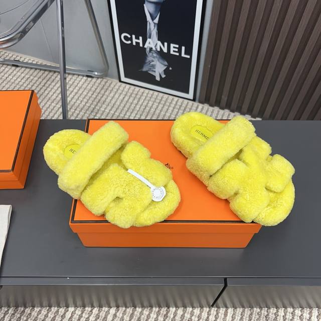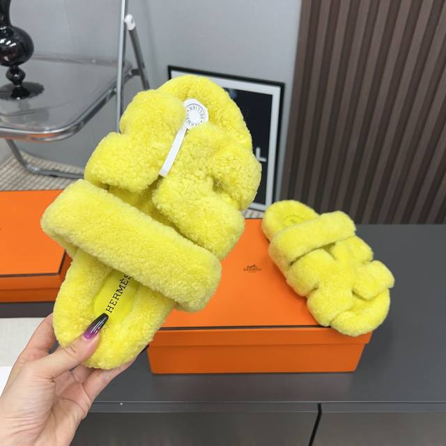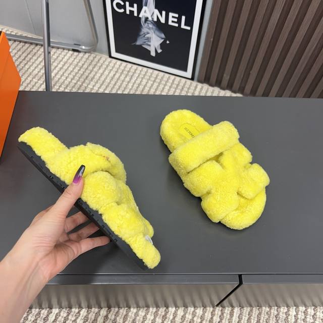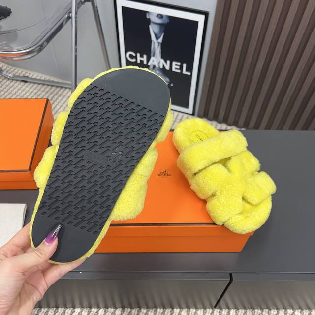 H家h*Erms Vs秋季最新官网同步泰迪新款沙滩毛拖系列