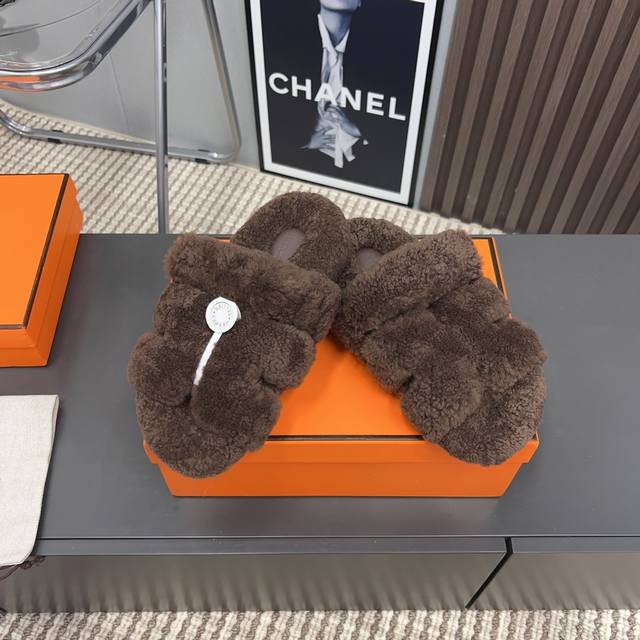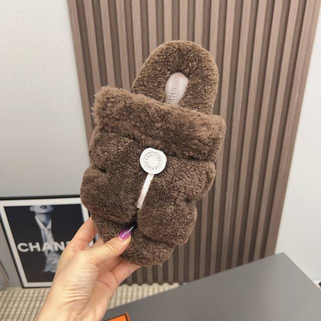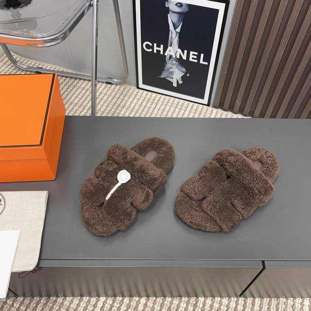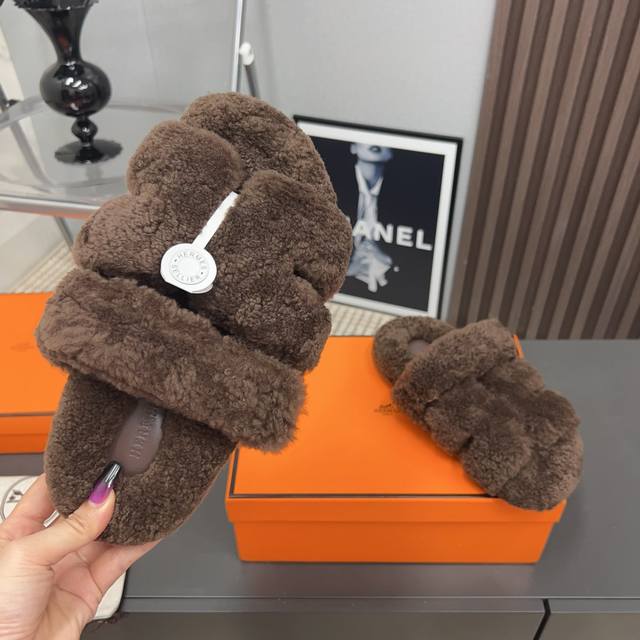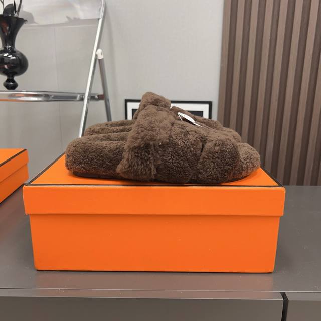 H家h*Erms Vs秋季最新官网同步泰迪新款沙滩毛拖系列