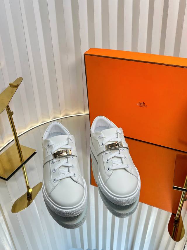 Herm*S 爱仕Kelly鞋扣休闲小白鞋鞋上线! 升级版