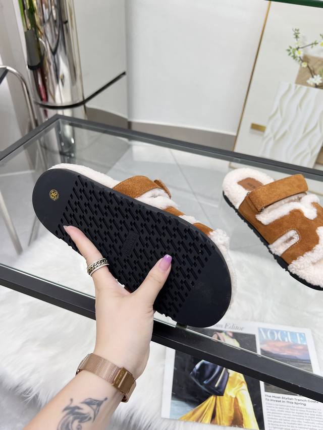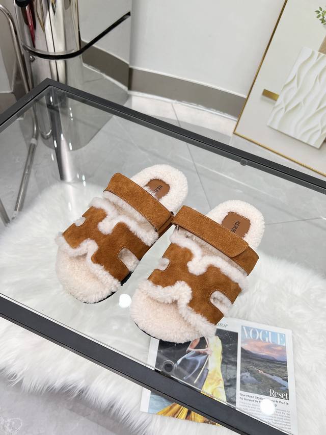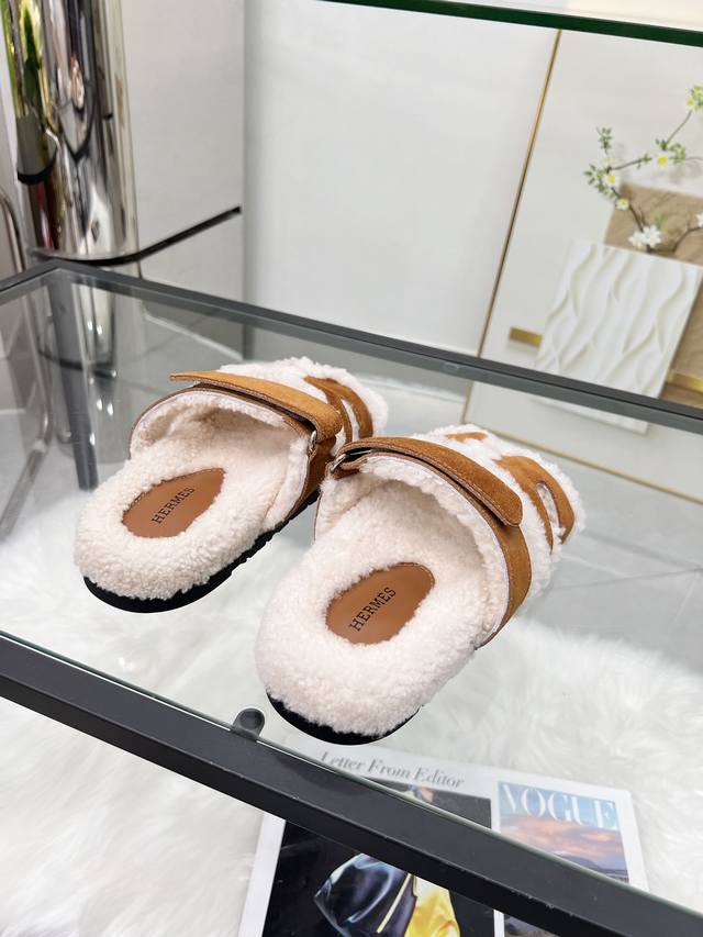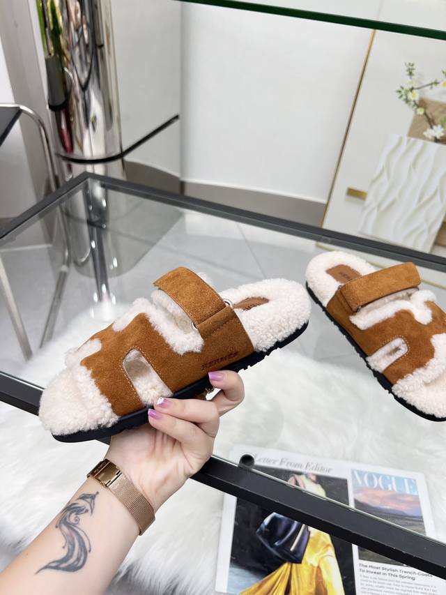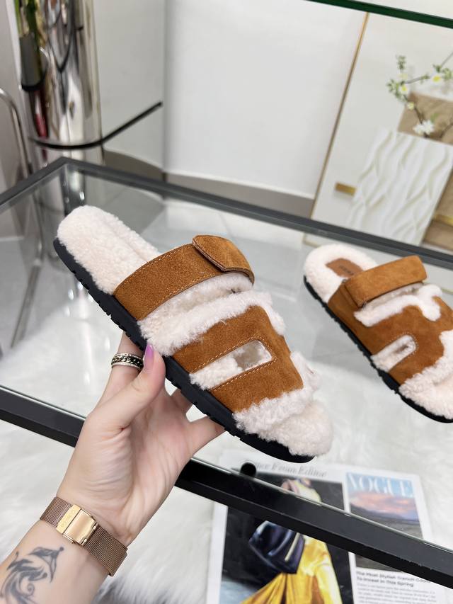Hermes 爱马经典爆款二舅羊毛拖火爆来袭。秋冬穿搭必备单品 居家、出街百搭时尚超洋气 配色极其丰富多彩!行走的托斯卡纳风!Tpr防滑大底超轻盈 上脚超舒适无束缚感