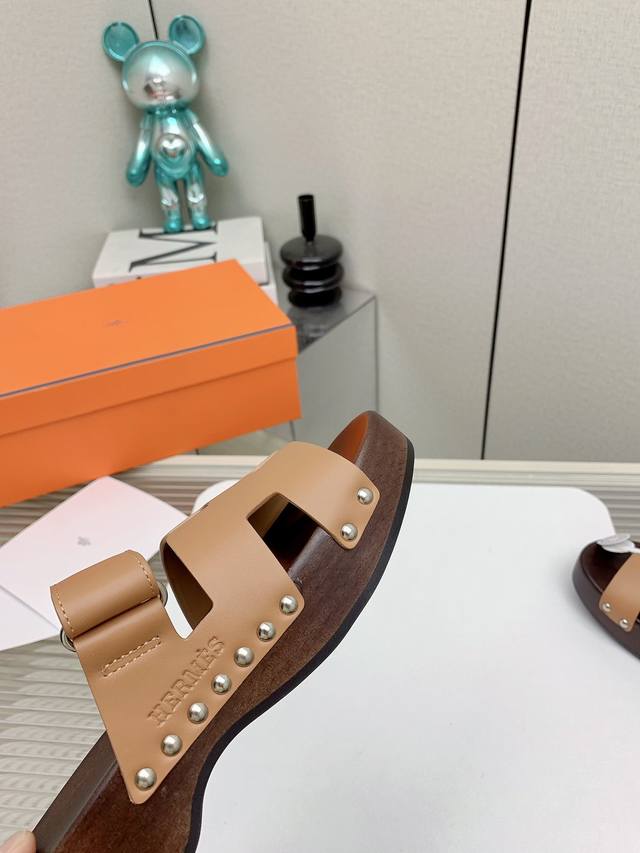 爱马仕经典款H拖鞋 时尚简约风拖鞋小牛皮材质 经典“H'”镂空鞋面 女人的点睛单品!经典万能拖...