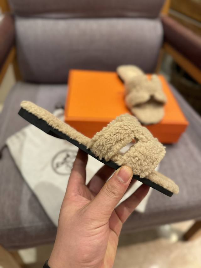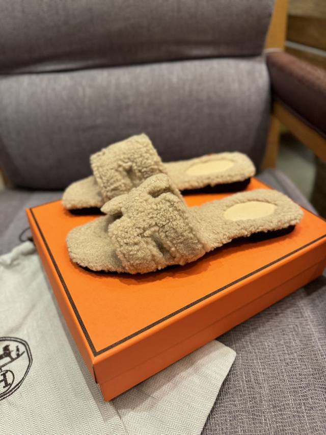 出厂:Hermes 爱马仕 秋冬新款 休闲家居外穿毛毛拖鞋时尚潮流最新款泰迪羊毛h拖秋冬款平底毛拖,上脚超百搭暖底,女主们的最爱!码数:35-42