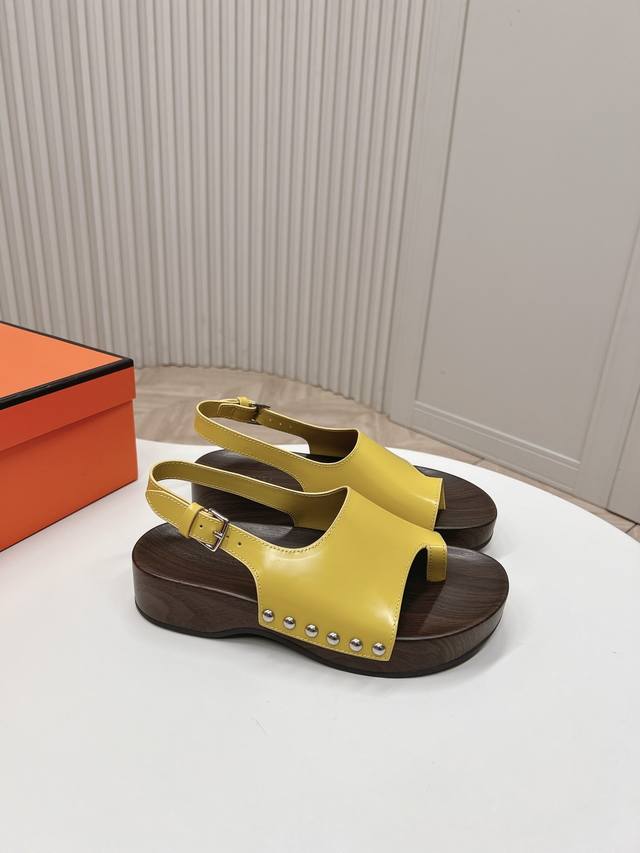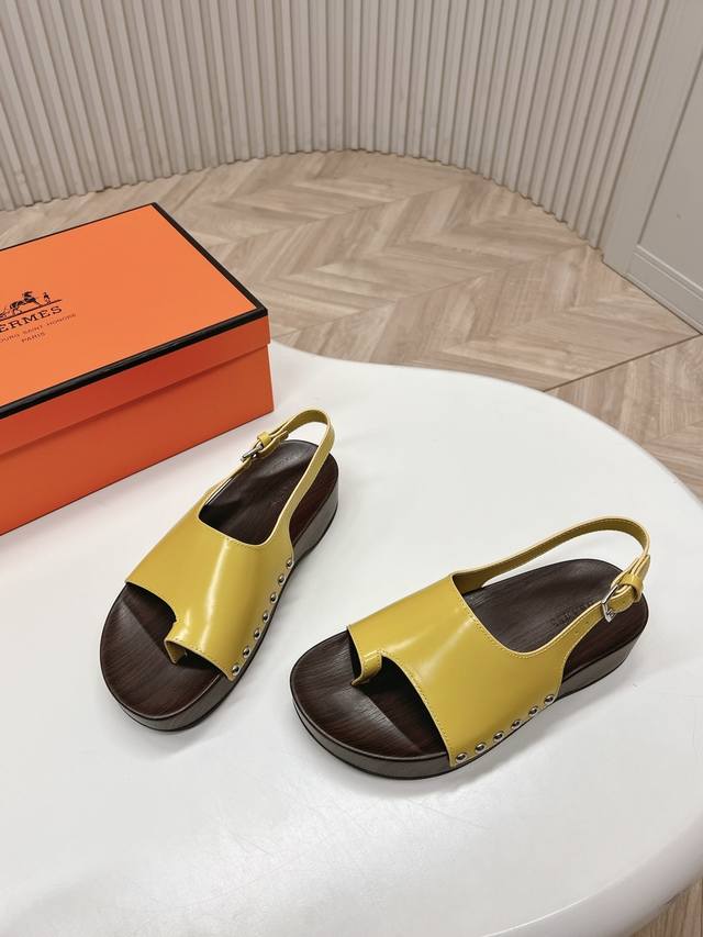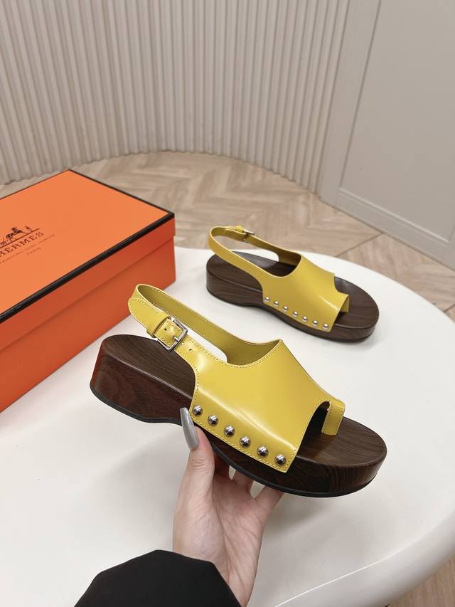 出P330 Hermes 爱马仕情侣款 2025新款 Kos二舅鞋H型厚底木底凉鞋拖鞋