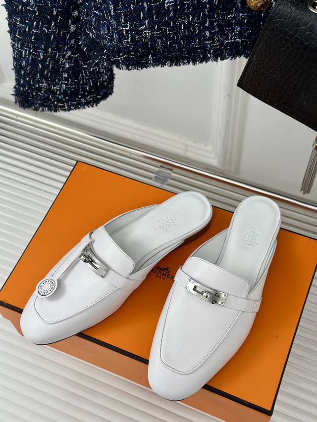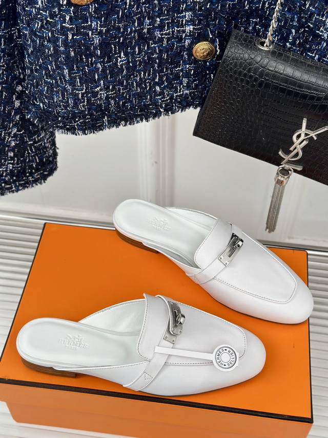 Herme*经典kelly扣穆勒半拖