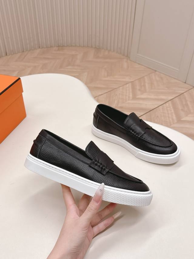 情侣款H家最新经典乐福鞋!经楦靴型+英伦复古设计,经典耐看!原版倒模楦型,极致1:1形体,进口高端牛皮 布面料组合呈现出精致质感!