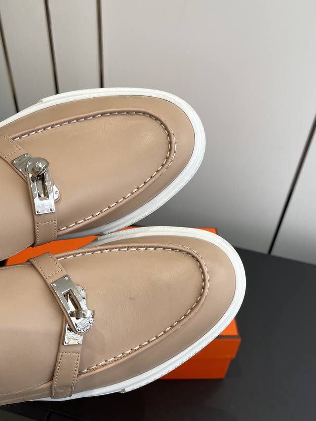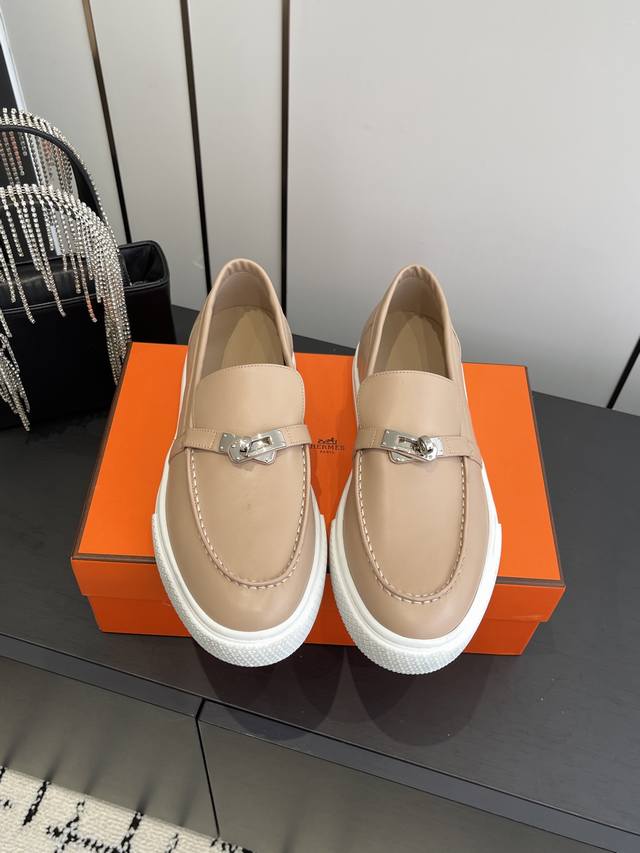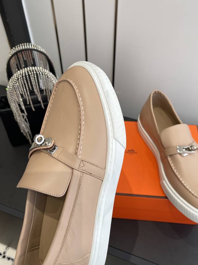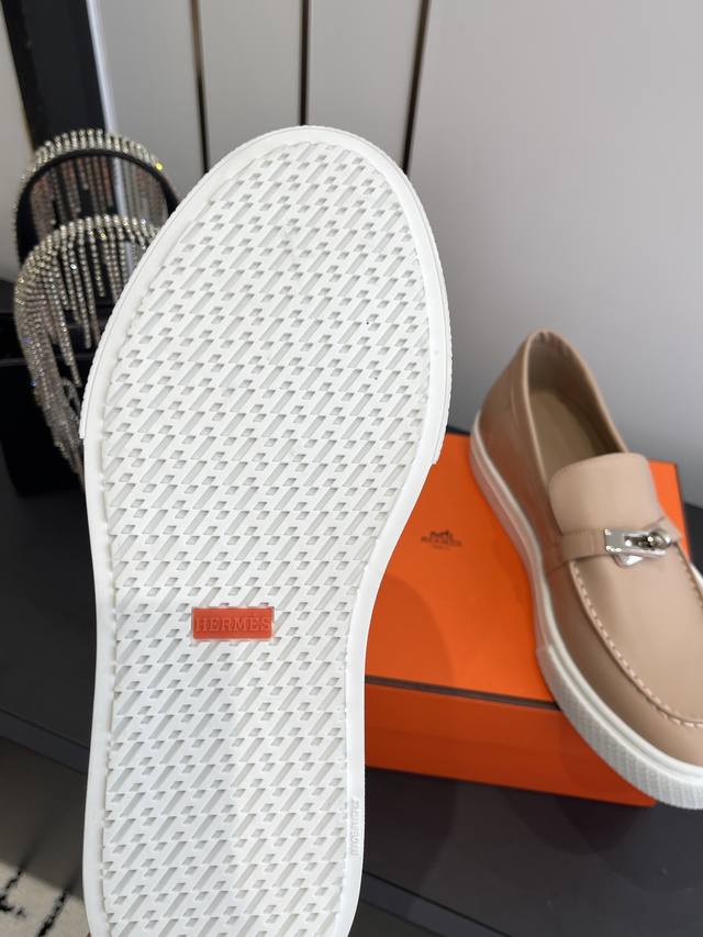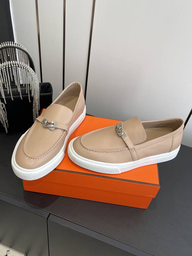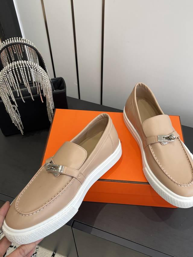 / 女款 男款 爱马仕 经典H 情侣款 乐福鞋 经久不衰 休闲 简约风格免系带休闲运动鞋. 面料定制进口牛皮 羊皮内里垫脚+原版大底 尺码35-45 [女40.41