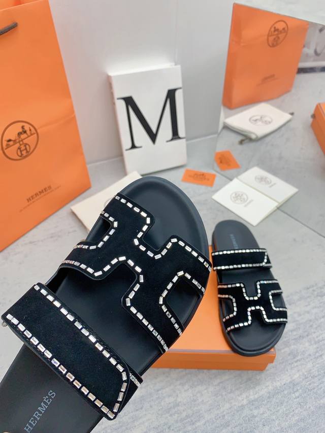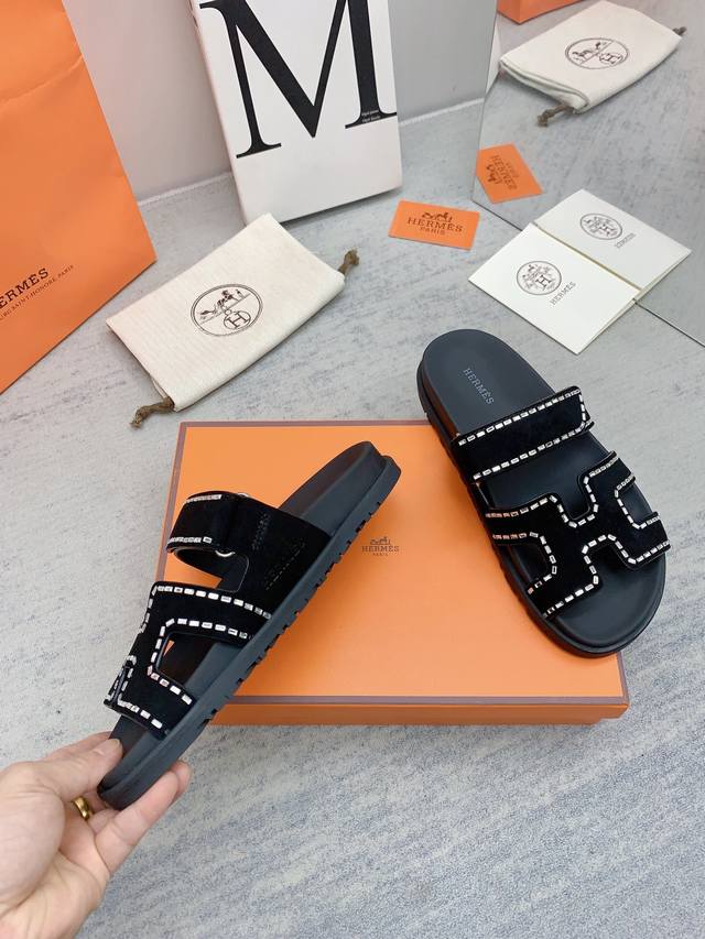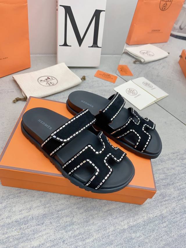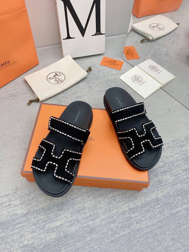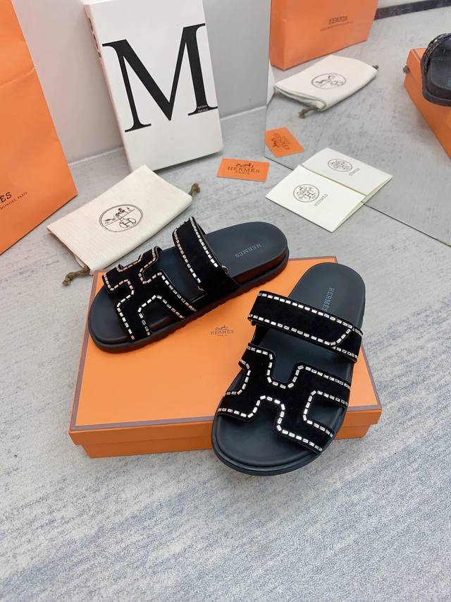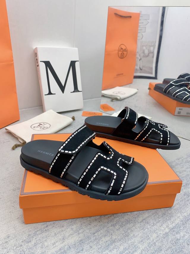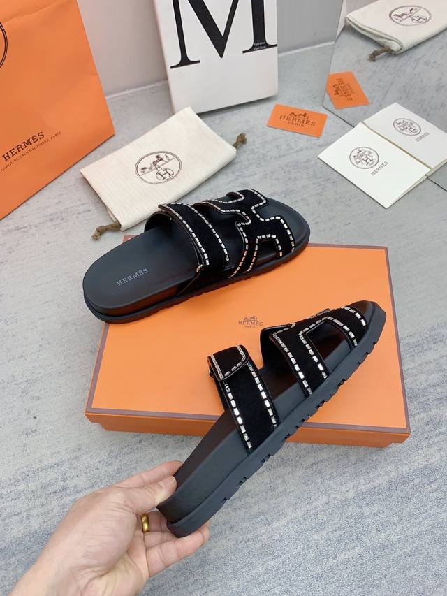 H家 2022秋冬新款 Herme*S最近火到不行的情侣款二舅鞋- 凉鞋,搭配各种彩色袜子,潮爆了